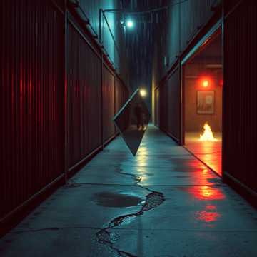 [A tense urban alternative rock track with clean electric guitar riffs, pulsating bass underpins the mix, Verses are driven by sparse percussion, spoken-sung vocals, and swirling synths, Choruses burst with saturated synths, distorted guitars, soaring melodies, and explosive rock drums, all presented in high-fidelity Dolby Atmos, with every element pristinely mastered and the bass cleanly defined for cinematic impact, ]