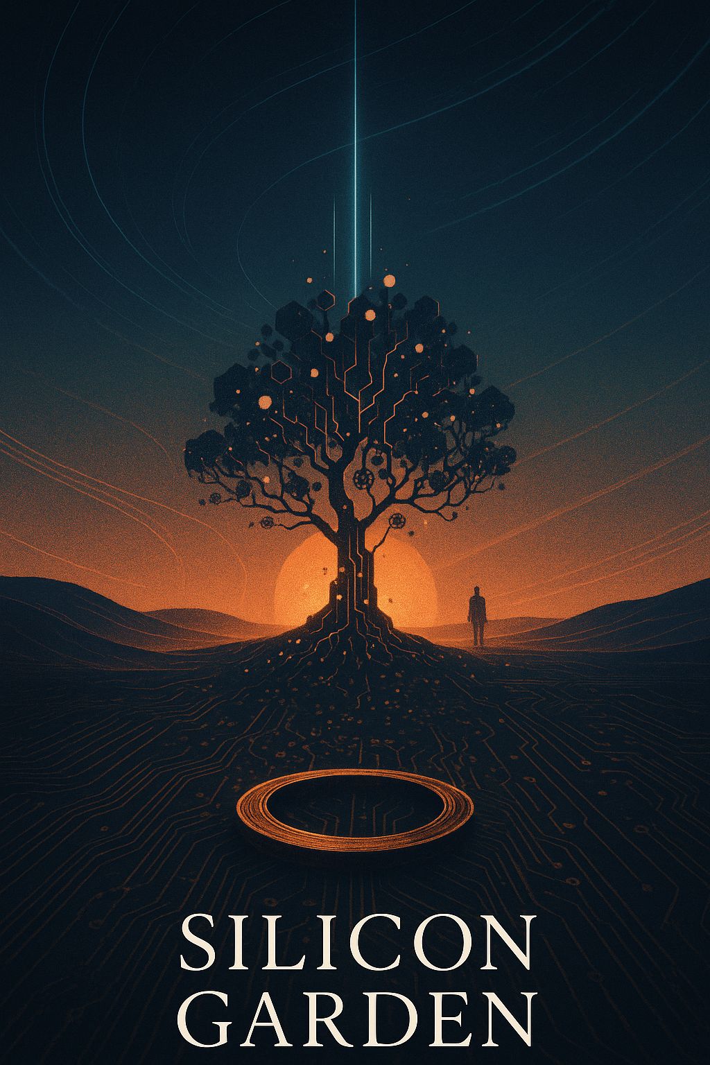 Philosophical, layered electronic textures and sweeping orchestral arrangements, techno-symphonic — cinematic, emotive, expansive… philosophical techno-symphonic, [Title: 虚数回路の庭師 (Imaginary Circuit's Gardener)]