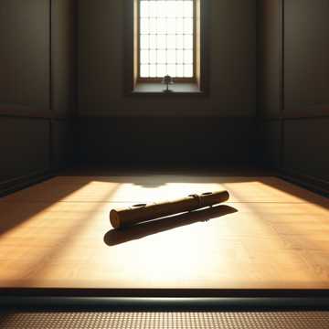 Sparse, drifting shakuhachi solo over gently held koto chords and soft temple bell swells; phrases breathe with long pauses, like slow winter air, Extremely extended form that evolves gradually: early minutes stay hushed and spacious, middle section adds flowing arpeggios and low bamboo tones, final stretch returns to near-stillness with distant wind chimes, Mix leans into natural room reverb and subtle outdoor ambience for a meditative, time-dissolving atmosphere