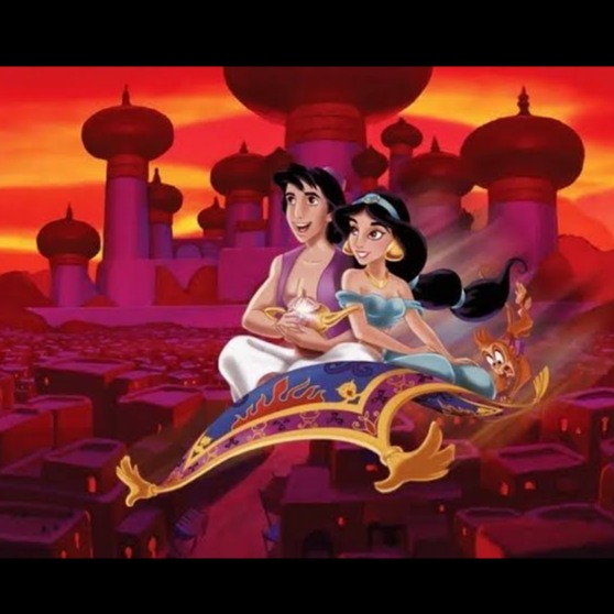 Magical Disney-style Arabian adventure inspired by Aladdin and the city of Agrabah, Warm desert night atmosphere, golden palace lights, flying carpets over ancient rooftops, mysterious bazaar sounds, oriental instruments, oud, darbuka, ney flute, cinematic orchestral magic, sparkling stardust in the sky, romantic and adventurous mood, mystical genie energy, vibrant Arabian fantasy world, epic Disney musical vibe, rich harmonies, magical storytelling atmosphere, wide stereo cinematic sound, enchanted Middle Eastern melodies