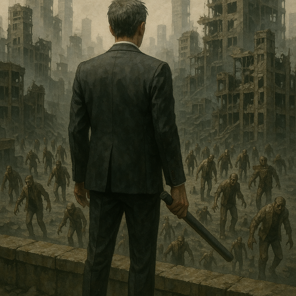 Japanese Dark Alternative, decadent and irregular rhythm, monotone male vocals, detached singing style, industrial ambient, dissonant harmonies, unconventional song structure, minimalist arrangement, lo-fi production, spoken-word elements, drone bass, irregular time signatures, avant-garde horror, atmospheric decay, emotionless delivery, unsettling soundscape