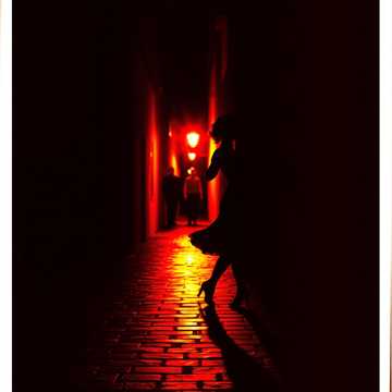 Dark, knife-edge Argentine tango – 4/8 pulse driving like footsteps, Intro opens with solo violin in a low register, tense and exposed, answering distant bandoneon breaths; double bass carves sharp staccato steps, More romantic and different melodies