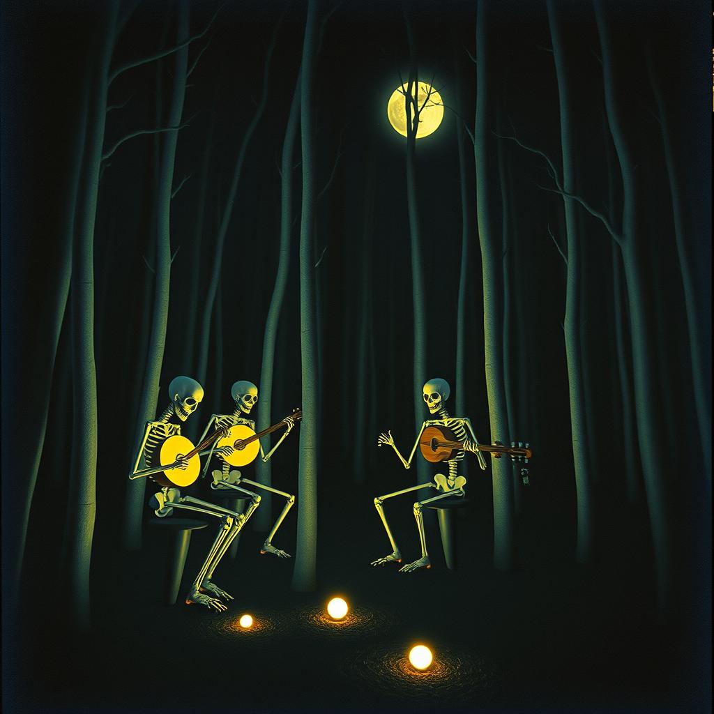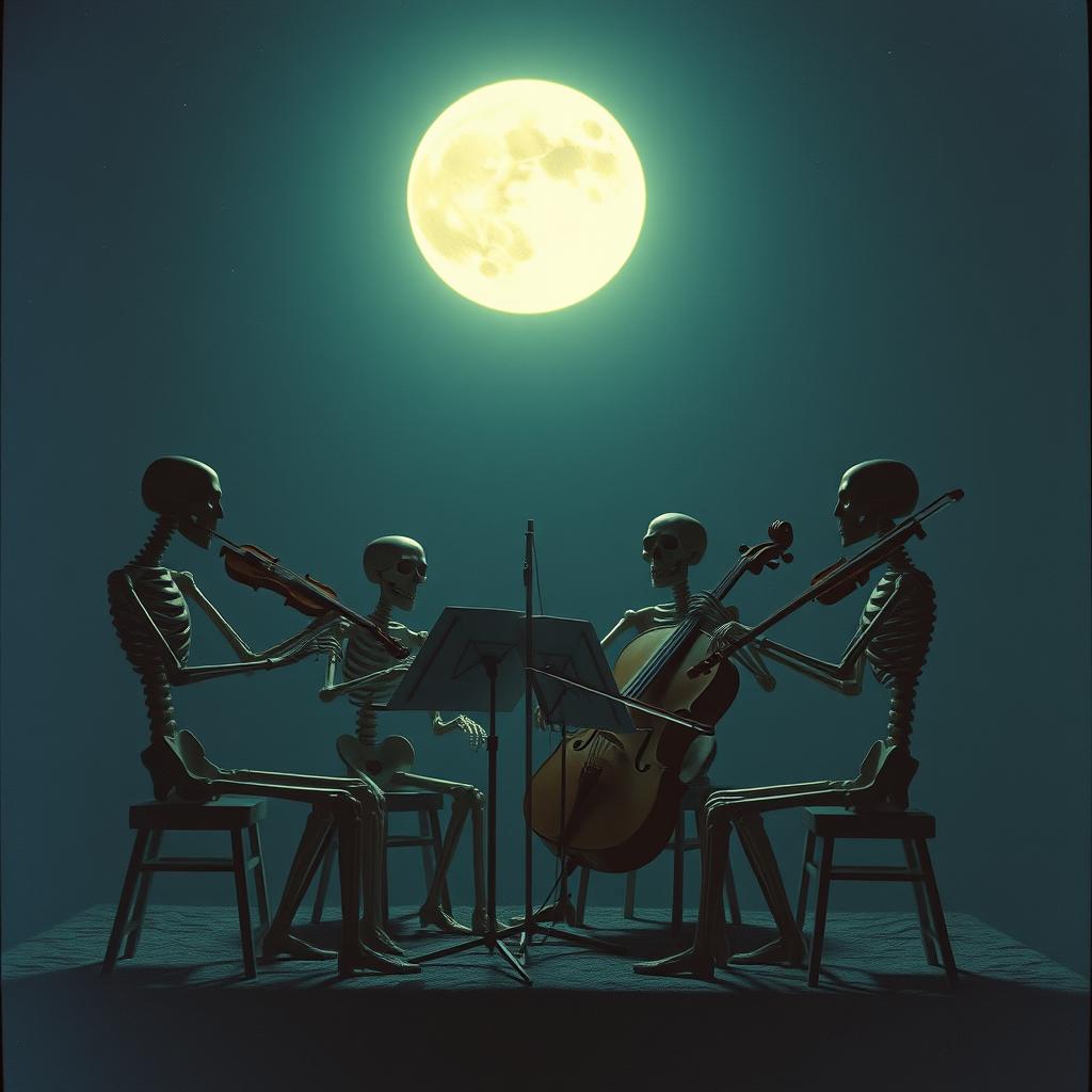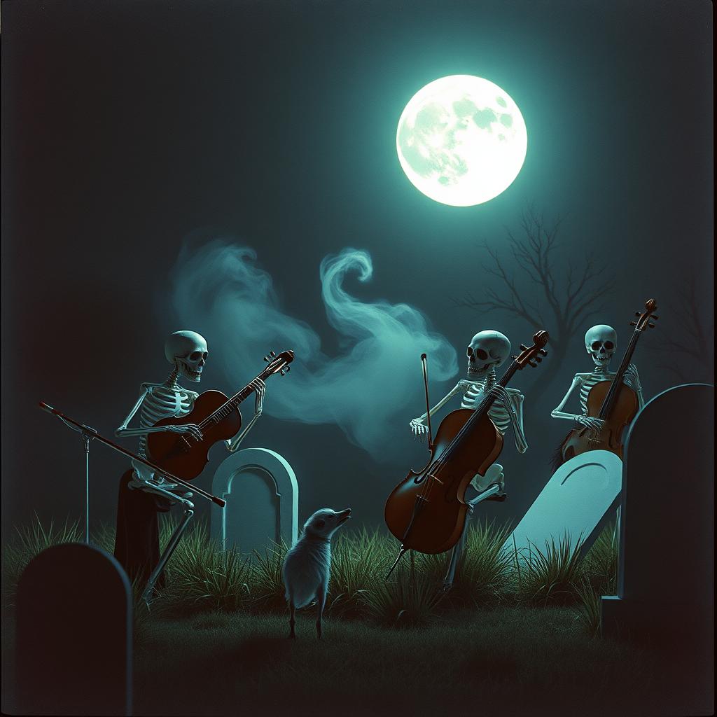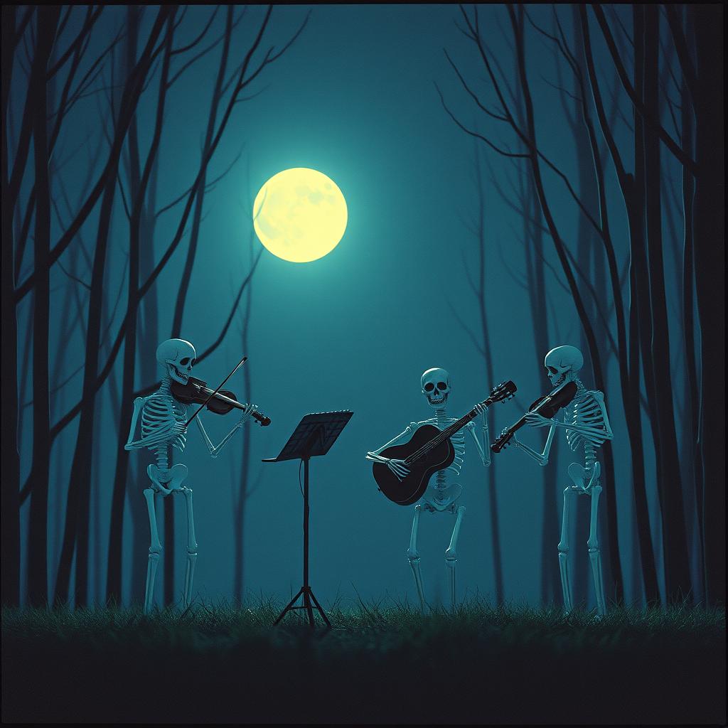 haunting orchestral 90s indie rock with a raw, slanted feel, Angular, slightly dissonant acoustic guitars with jangly strumming and sudden bursts of chaotic energy, Loose but driving rhythm section—busy orchestral double bass, and punchy, imperfect drums that feel played live, not locked to a grid, Male baritone vocals delivered half-sung, half-shouted with dry, detached doleful attitude and bursts of urgency, Moderate-to-fast tempo (120–140 BPM), Abrupt dynamic shifts between restrained verses and explosive orchestral choruses, Lyrics feel fragmented, ironic, and emotionally restless, Production is mid-fi and gritty—natural room sound, minimal effects, no gloss, College-rock energy, noisy but catchy, tense and scrappy, No pop polish, no synths, no metal, include cello, violin, viol, timpani drum, bassoon, bass clarinet, flutes, xylophone and grand piano