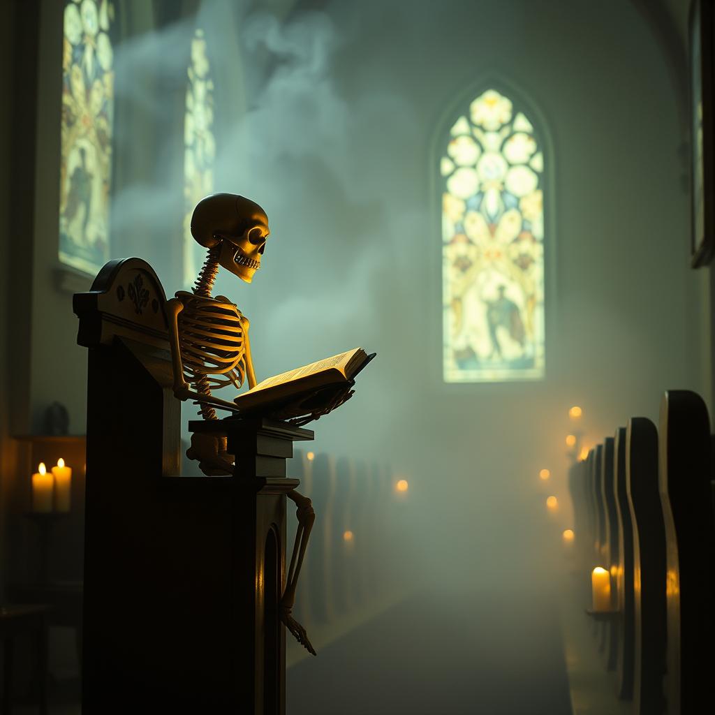 Deeply haunting yet catchy orchestral 90s indie rock with a raw, melancholy, slanted feel, Angular, slightly dissonant acoustic guitars with jangly strumming and sudden bursts of chaotic energy, Loose but driving rhythm section—busy orchestral double bass, and punchy, imperfect drums that feel played live, not locked to a grid, Male low baritone vocals delivered half-sung, half-shouted with dry, detached doleful attitude and bursts of melancholic urgency, Moderate-to-fast tempo (120–140 BPM), Abrupt dynamic shifts between restrained verses and explosive orchestral choruses, Lyrics feel fragmented, ironic, and emotionally restless, Production is mid-fi and gritty—natural room sound, minimal effects, no gloss, College-rock energy, noisy but catchy, tense and scrappy, No pop polish, no synths, no metal, include cello, violin, viol, timpani drum, bassoon, bass clarinet, flutes, xylophone and grand piano, include church congregation backing vocals