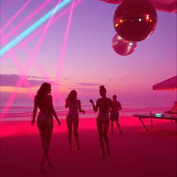 1990s Italo Disco-inspired dance track with a catchy, upbeat melody, Style: energetic, synth-driven pop with fun, nostalgic Italian disco vibes, Tempo: fast, danceable, perfect for club or party floors, Mood: joyful, romantic, playful, uplifting, slightly dreamy, Theme: love, flirtation, summer nights, dancing together, fun moments with a partner, Vocals: expressive lead (male or female), melodic, slightly dramatic, cheerful and catchy, Instrumentation: bright synth leads, arpeggiated synths, electronic drums, bassline, retro effects, optional sax or brass accents, Chorus: very catchy, sing-along, memorable hook, Bridge: instrumental or melodic break with synths building back to a full, high-energy chorus, Overall feel: retro-club / beach disco atmosphere, energetic, fun, flirtatious, perfect for dancing