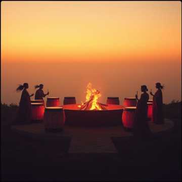 A 5–8 minute instrumental Tribal House track built for continuous movement and hypnotic flow, Features organic tribal percussion, deep house basslines, warm rhythmic synths, and subtle vocal chants used sparingly as texture, The groove is steady, danceable, and ceremonial, blending ancient drum energy with modern house structure, No abrupt drops, no harsh transitions, Designed for long play listening, night movement, focused work, and immersive rhythm journeys, Deep bass, Deep House, Epic, Echo, Cinematic, Big Room Spatial Echo, Varied Left and Right channels to every other beat, warble, Sunset Warmth – brighter percussion, warmer chords, deeper bass, fewer highs, spooky, haunted, FUN
