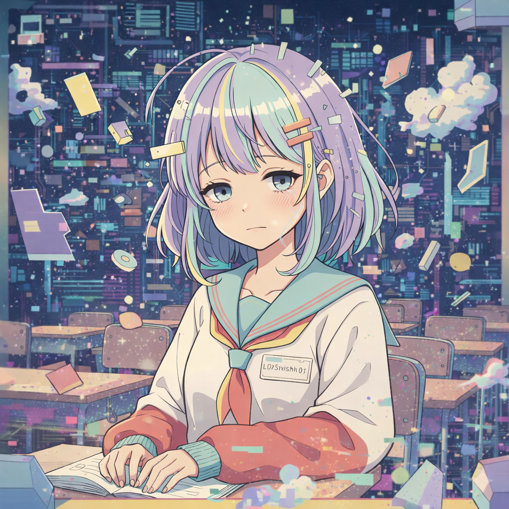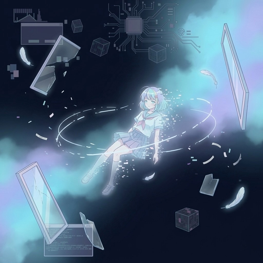 [Theme] abstract emotional hint, floating memory-fragments, playful denpa with no explicit love/drama