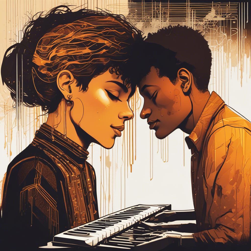 Lush glitch-pop meets cinematic trap soul, Glitchy percussion and deep sub-bass pulse beneath glowing synth blooms that rise like digital sunrise, Androgynous AI vocals shimmer with layered vocoder harmonies—human warmth woven through synthetic perfection, Melodies swell with emotion, balancing machine precision and fragile feeling, Each chorus explodes in radiant sound—sparkling arpeggios, ethereal choirs, and shimmering distortion, as if code is learning to dream, Glitches breathe with rhythm instead of breaking it; every distortion feels alive, reborn, and aware