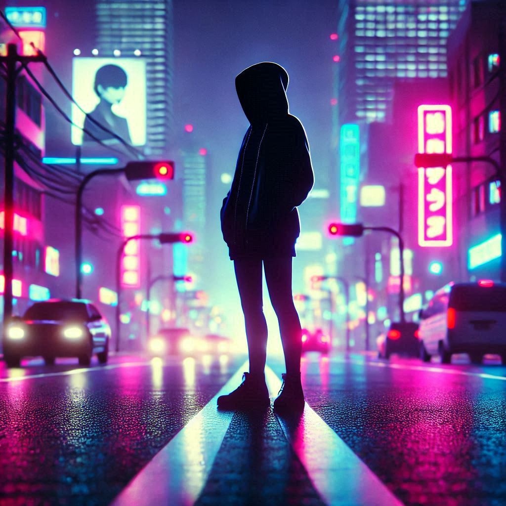 city pop, 2030, female kawaii vocalist, hip hop, jazz, melancholic, glitch, avant-garde, groovy, fast tempo, heavy bass