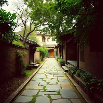 [SFX: Subtle use of stone scraping, hammering, birdsong in distance, school bell chime to reference modern town life]