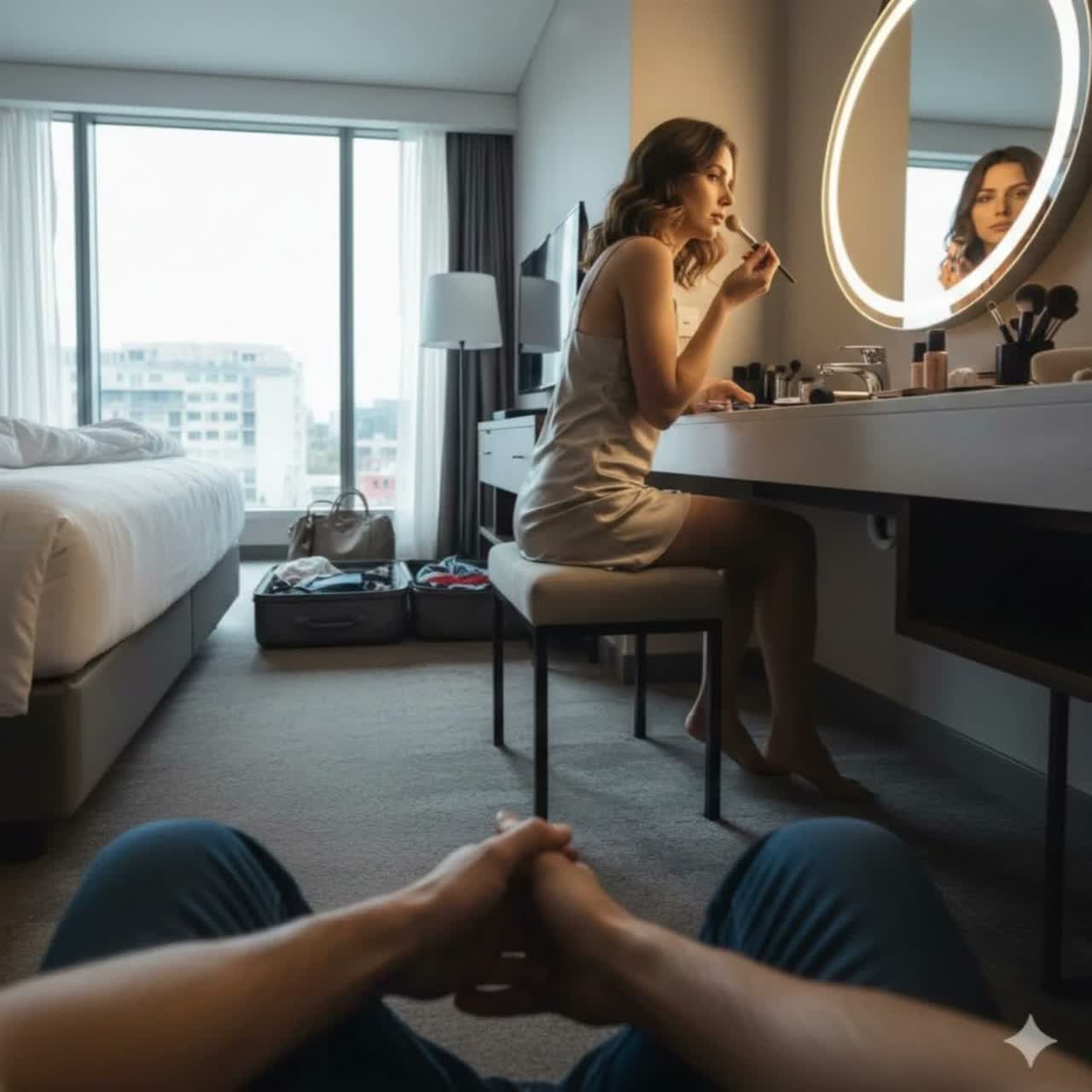 BEAT CUES:intro: lo-fi ambient hotel room sounds, soft piano loopverse: steady groove, minimal percussionpre: soft rising chords, emotional liftchorus: full drop with chant hook + layered texturesverse 2: warmer but hollow tone, sparse FXbridge: ambient breakdown, mirror reverb FXfinal chorus: layered vocal stacks + subtle glitchesoutro: reversed hotel door click, fade