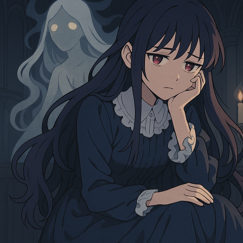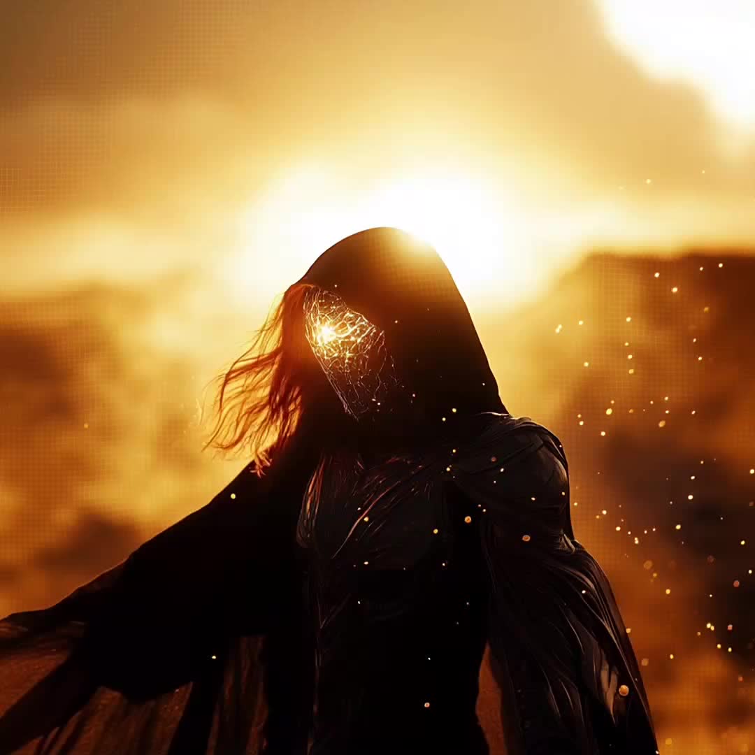 Haunting female voice, dark, spooky, alternative indie, echoes, heavy bass, melodic, catchy, dolby atmos, dark trap, world fusion, arpeggiated, harp, violin, reverb