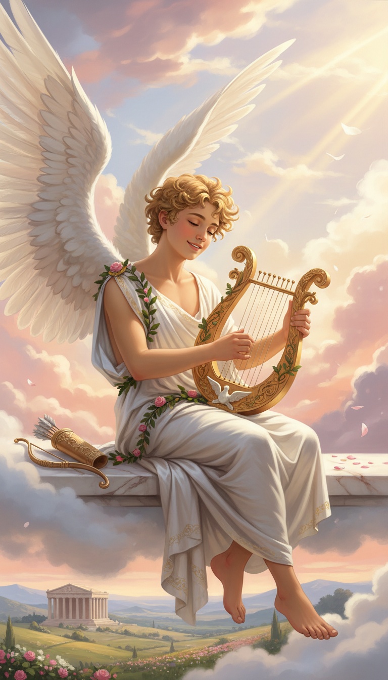 A slow, yearning arrangement begins with delicate harp arpeggios, joined by a warm, expressive flute melody, A solitary hum enters, blending softly with the instruments, Sparse textures, subtle dynamic swells, and gentle interplay create a tender, intimate atmosphere