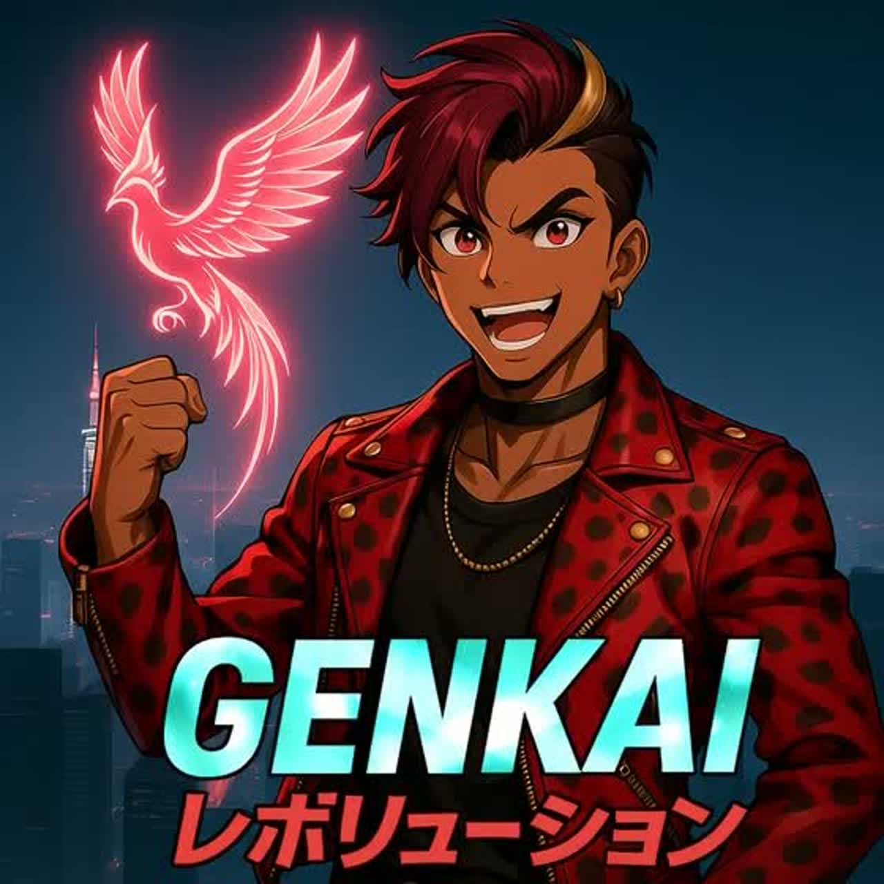 This high-energy J-Pop and Power Pop fusion opens with a bright synth lead atop driving electric guitar riffs, punchy, compressed drums, and melodic bass at 175 BPM, Verses give way to tension-building pre-choruses using jazz-tinged chords, then explosive choruses with layered synths and wide backing vocals, An instrumental bridge spotlights a technical guitar solo, Production is sleek and modern, maximizing stereo width and clarity