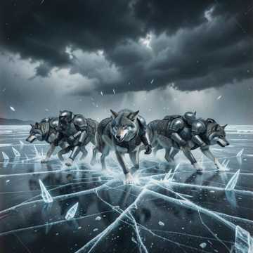 "Speaker-shaking industrial bass, deep sub frequencies (40–80 Hz), fast and relentless marching rhythm like a charging army across ice, Metallic percussion hits hard and sharp, layered with icy synths and dark cinematic drones, Tension and aggression throughout, driving low-end punch that hits hard on small and large speakers alike, Sounds like a ruthless force advancing, unstoppable and predatory, perfect for a battle march in a frozen wasteland, "