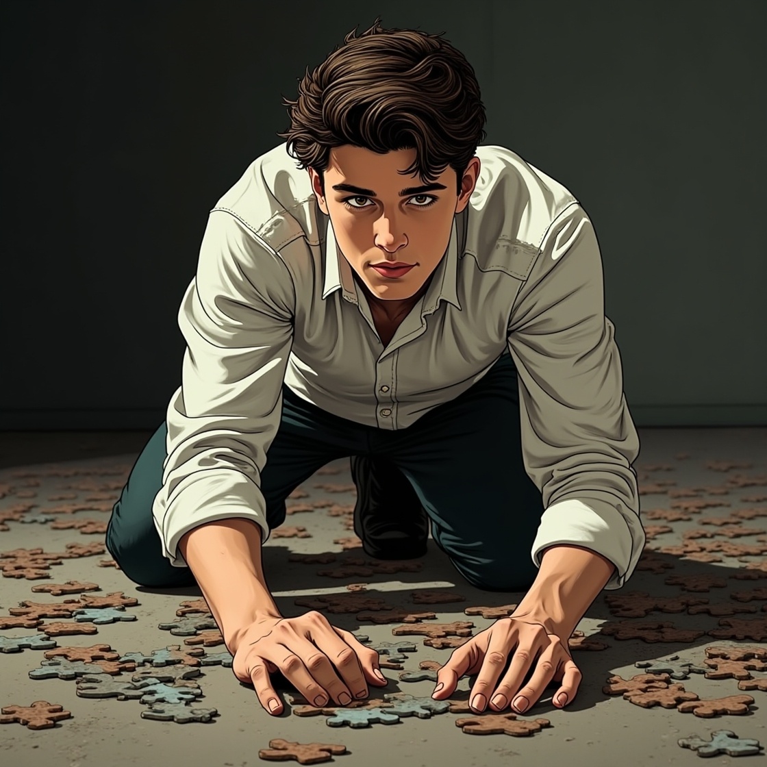 Energetic 1980s synth pop and cinematic textures intertwine: bright synth arpeggios and pulsing bass anchor the verses, while a rich baritone leads with introspective melodies, The choruses add lush male vocal polyphonic harmonies and sweeping strings, crafting an emotional, poetic journey