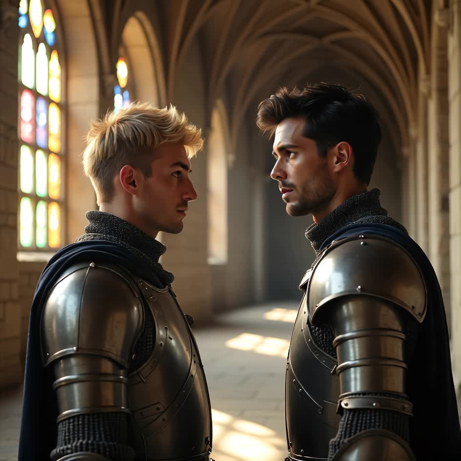 Minimalist, hook-driven 1980s-inspired dark synthpop with dark fantasy symphonic metal fusion blends with airy analog pads, pulsing electronic bass, and shimmering clean guitar with delay, Gated drum machines drive a steady, mid-tempo rhythm beneath sparse, melodic motifs, Male baritone vocals deliver with quiet intensity and emotional restraint, occasionally layered for ethereal harmony, The mix emphasizes stereo width, digital plate reverb, and subtle saturation, evoking cool detachment, introspective tension, and spacious urban melancholy
