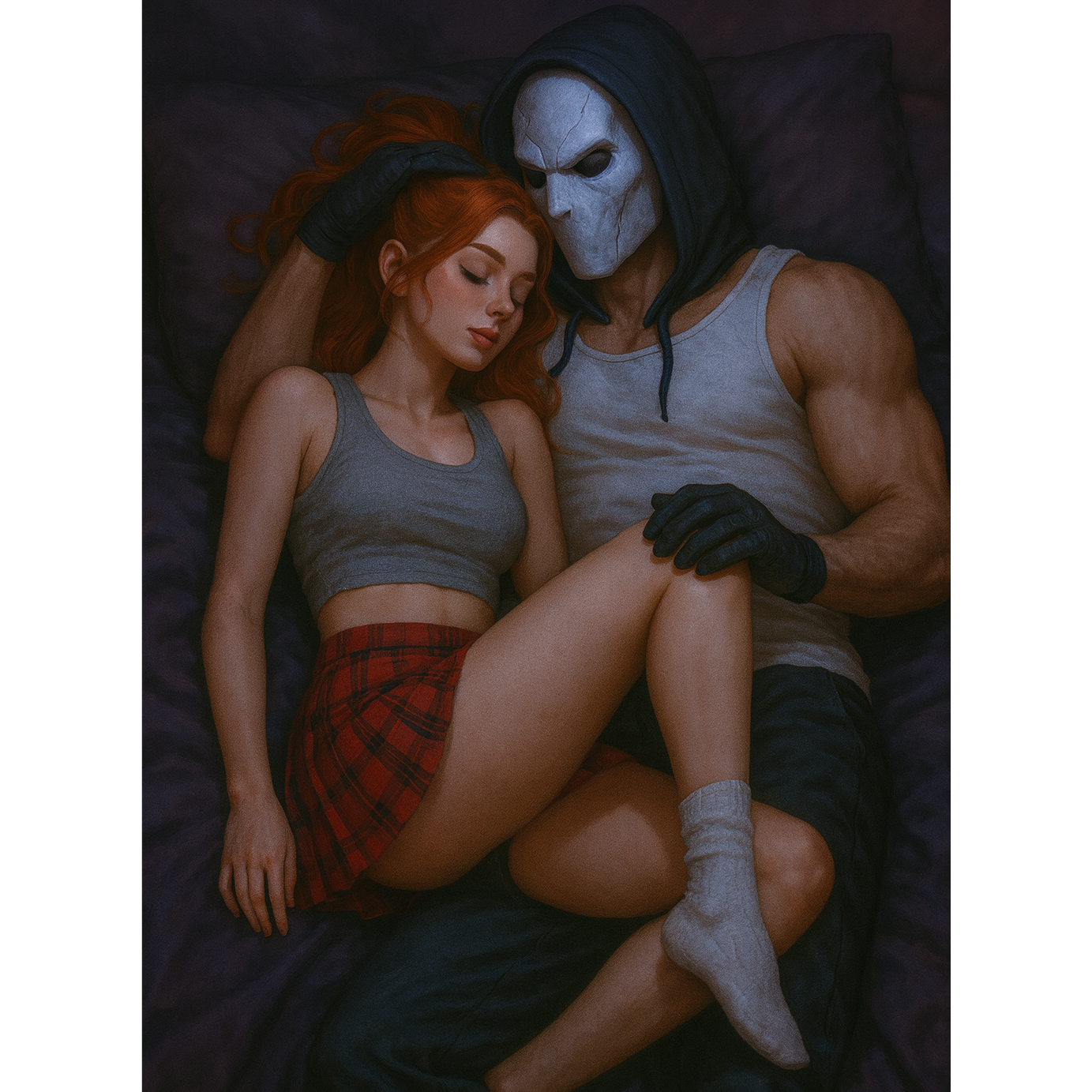 Heavy groove-driven metalcore with cinematic tension and sensual intensity and a catchy baddiecore vibe, Dark, hypnotic, and atmospheric, Verses are restrained and analytical; choruses erupt with primal emotion, Mood: Erotic, magnetic, transcendent — a fusion of intellect and instinct, Vocals: Seductive Male alto with breathy intimacy in verses and powerful, layered belts in the chorus; occasional falsetto and growl interplay, Instrumentation: Downtuned distorted guitars, deep sub-bass, syncopated drums with polyrhythms, lush synths, and piano accents with an unexpected catchy celesta melody, Wide dynamics — quiet tension before explosive release, Production: Modern, dark, and spatial, Reverb-heavy vocals, pulsing rhythm, cinematic rise to final eruption, Audiophile quality, ‑Generic metal riffs, ‑pop rock, ‑punk