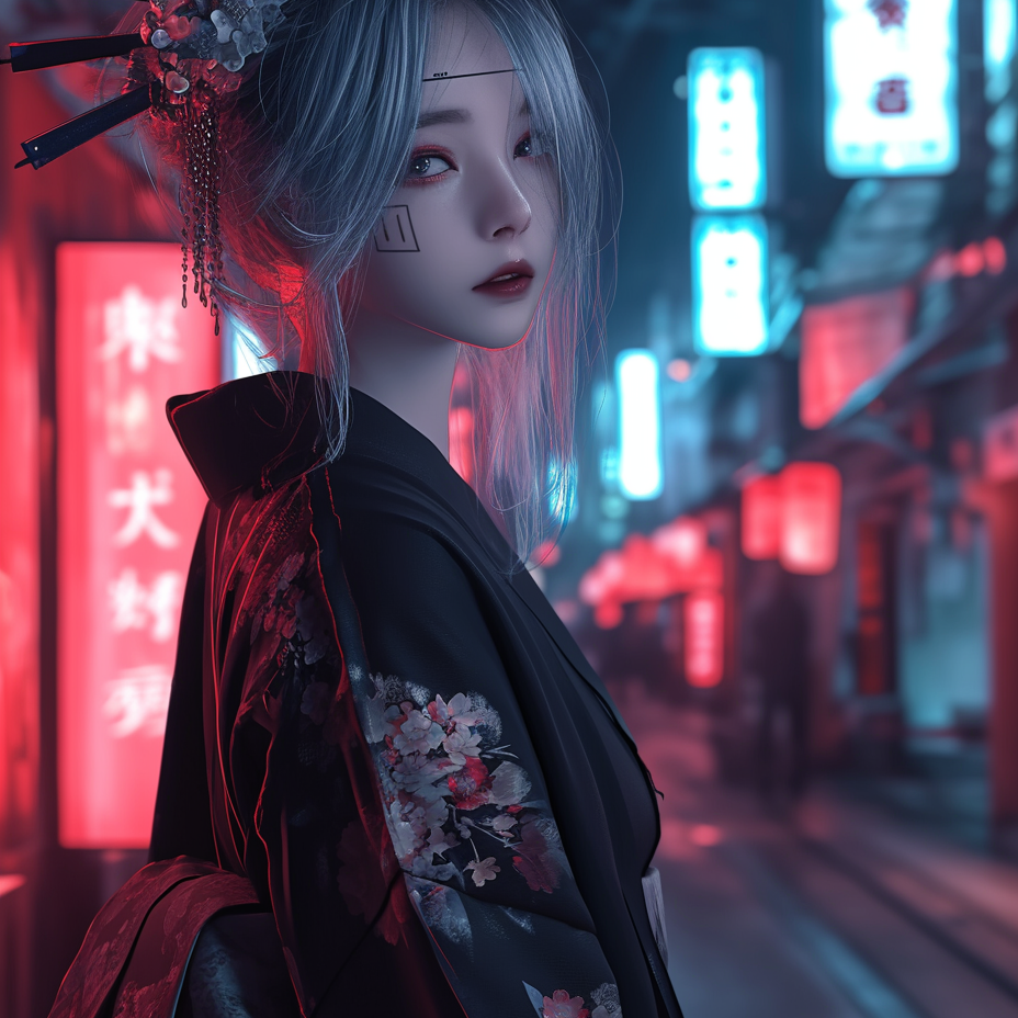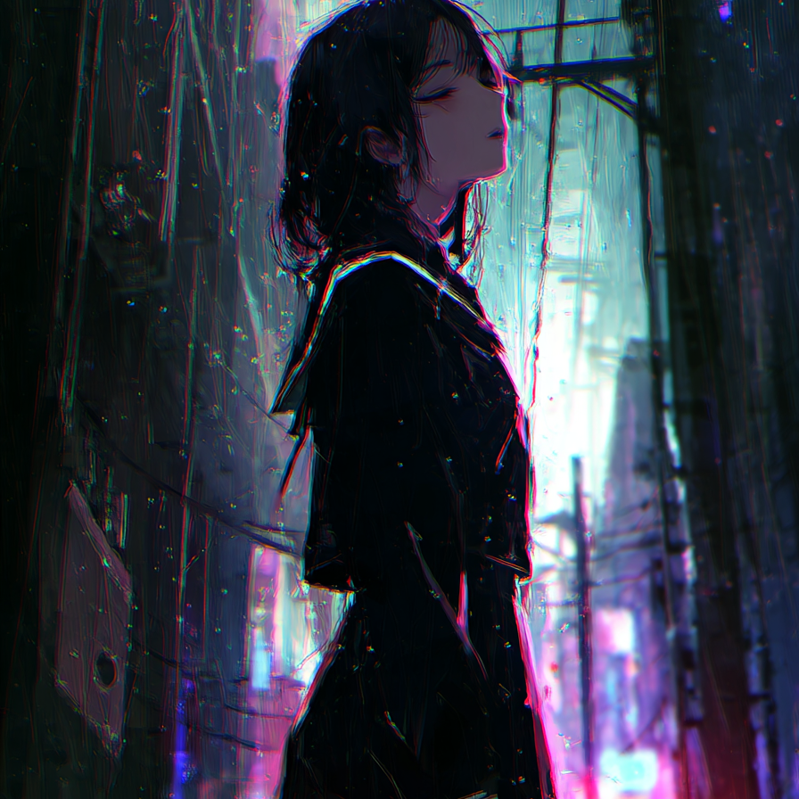 [Cyber Enka × Future Funk Club Hybrid × Emotional Club Ballad × Addictive Electro Rhythm × Japanese Traditional Fusion], [Female Vocal: Japanese Enka timbre with strong nasality, expressive vibrato, and dramatic pitch slides; uniquely delayed phrasing mimicking traditional enka breath pauses], [BPM: 126 with triplet swing], [Key: E Minor → modulates to A Dorian in chorus], [Instruments: 90s-inspired synth leads, slap bass, taiko-reverb hybrid percussion, ambient pads, traditional shamisen and koto as rhythmic elements, with sidechained echo FX on chorus layers], [Mixing: Hi-Res mastering with emphasis on vocal intimacy and low-end groove, wide stereo club space], [Drop includes reverberated shamisen solo loop with stutter edits, rhythmic vocal chops, and granular glitch sparkles], [Intended for immersive listening in modern clubs and nostalgic spaces simultaneously], [Mood: emotional longing with defiant sensuality]