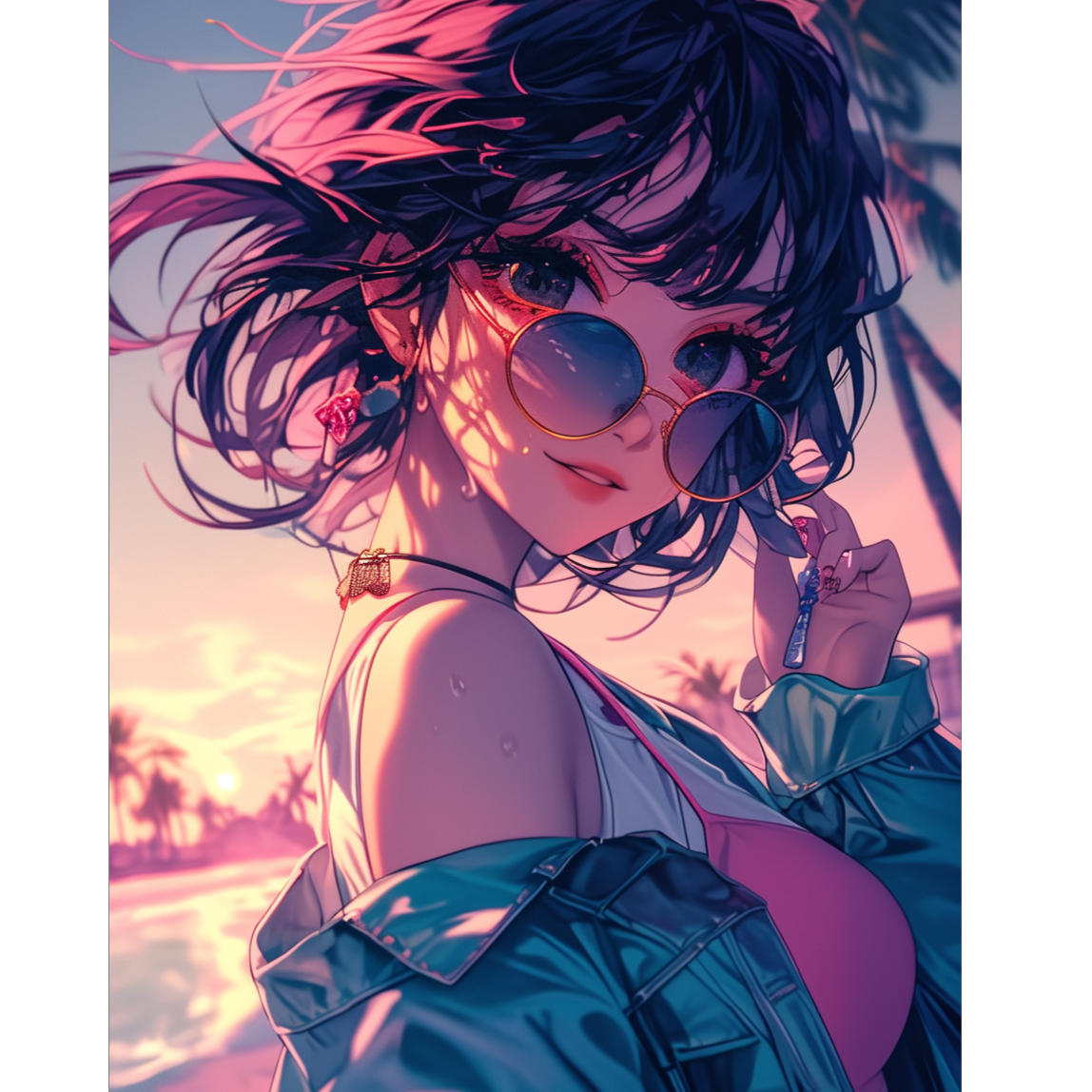 [Jersey Club × Funk Pop Groove × Tropical Trap Ballad × Whisper Hook Fusion], [BPM: 114 (Intro & Verse) → 72 (Trap Pre-Chorus) → 145 (Jersey Club Chorus)], [Key: B Major → Modulates to C# Major in final chorus], [Dual Vocals: youthful male (breathy falsetto & funk phrasing) × bright female (airy head voice, high-register counter hooks)], [Sound Design: chopped vocal hook FX, bounce Jersey kick, clavinet & slap bass riffing, summer whistle loop, reverb-splashed whisper segments], [Production: dynamic tempo shifts, percussive stop-glitch accents, ambient cicada/summer water FX], [Mix: tight low-end, multi-layered stereo vocals, hard-panned claps, modulated echo hook tails], [Ideal for: summer dance montage, TikTok dance hooks, anime insert ED, poolside night scenes]