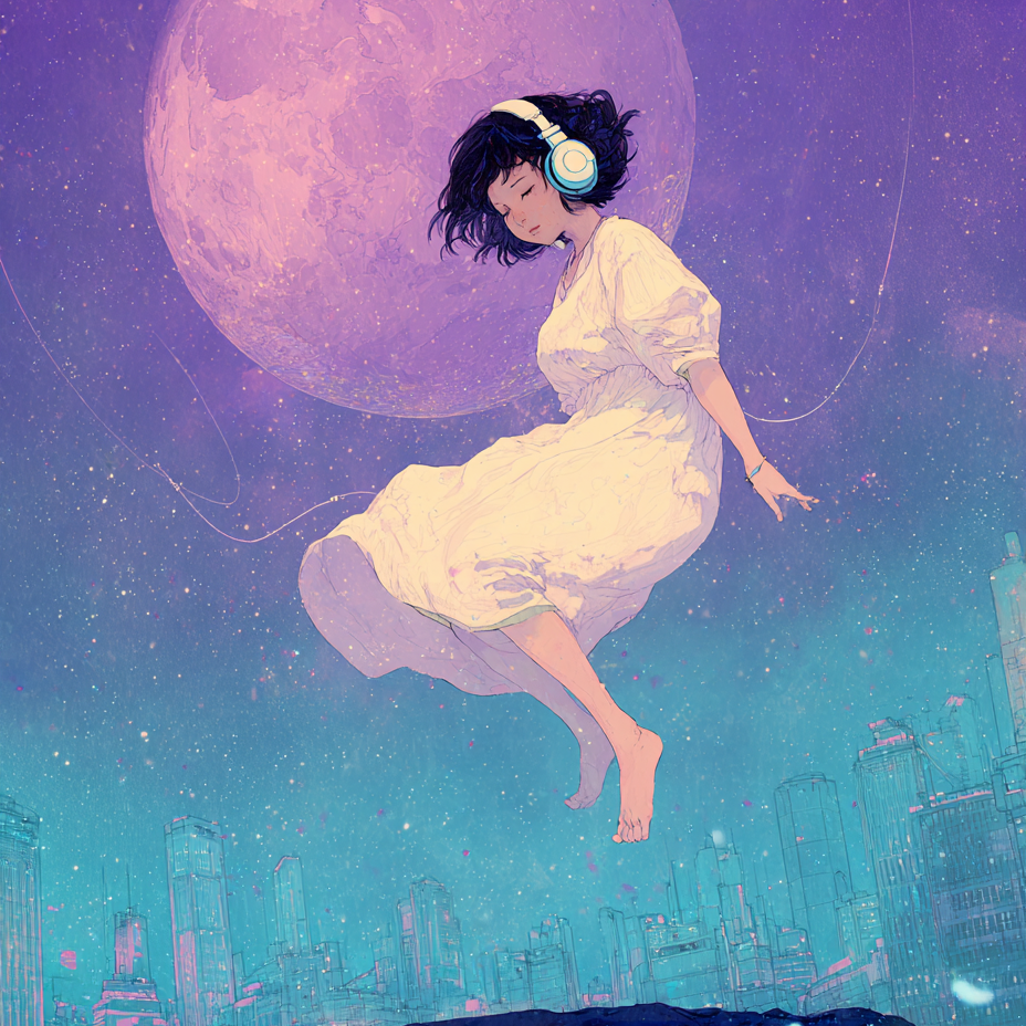 [Japanese Traditional × Addictive Alt-Pop × Japanese City Pop × EDM Jersey Club Fusion × Minimal Techno × Trap Bridge], [Female Vocalist: extreme vocal range with childlike innocence, yandere undertones, lazy breathy texture, emotionless delivery switching between rapid tempo changes], [Traditional Instruments: Shamisen (distorted), Taiko (processed), Koto (granular), Shakuhachi (vocoded), Tsuzumi, Biwa with electronic processing], [Production: Hi-Res mastering, crystalline highs with sub-bass pressure, wide stereo imaging with micro-delay panning], [Atmosphere: dreamy lunar isolation meets urban night pulse, detached romanticism with sudden emotional ruptures], [Sound palette: vintage Roland Jupiter-8 pads, 808 sub-bass glides, traditional koto samples pitched down, vinyl crackle ambience, reversed breath samples], [Rhythm: syncopated hi-hat patterns, sudden beat drops, polymetric percussion layers]