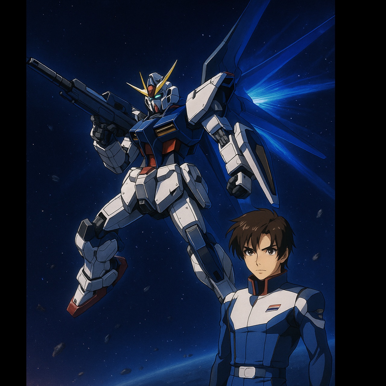 [Retro-Futuristic Synth Opera × Hyper J-Electro Anthem × Symphonic Digital Pop Rock], [Male lead vocal: piercing tenor with electric vibrato, staccato punch on consonants, dramatic glides in chorus], [BPM: 156 (with internal drop-to-128 bridge sections)], [Key: E minor with E Lydian interludes for cosmic lift], [Sound design features: arpeggiated saw-leads, crystal-clear sync delay lines, FM bell pads, vocoder choir overlays, bouncing sub-bass], [Atmosphere: infinite romanticism through the void, machine-orchestrated emotion, cosmic heartbreak rendered in synth starlight], [Instrumentation: bright synth strings, laser FX swells, sync-bass octaves, polyrhythmic clap tracks, distorted vocoder whispers]