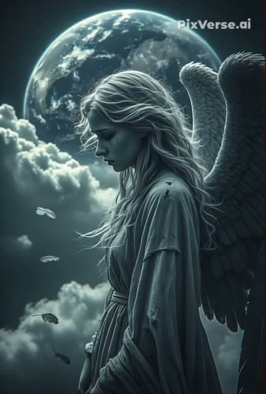slow tempo around 75 BPM, deeply emotional, sad symphonic metal blended with alternative metal, female vocals, soft to powerful dynamic range, expressive and fragile delivery, melancholic and tragic atmosphere, orchestral arrangement with prominent violins and mournful trumpets, slow build-ups, cinematic sorrow, reverb-heavy soundscape, distant choir pads, heartbreaking emotional tension, minor key harmonies, gradual crescendos into powerful emotional peaks, soft piano undertones, lingering notes, sustained strings, dramatic pauses, feeling of emptiness and loss, apocalyptic sadness, world collapsing imagery, intimate verses → expanding choruses → devastating climax, emotional storytelling, fragile to breaking voice transitions
