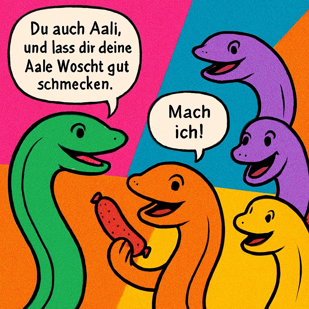 Male vocals eal voices dialog of two eals spoken word rap’n’trap mashup, Comic strip pop art d’n’b light liquid warm sharp nu-coolness laid-back soft groove holiday feelings
