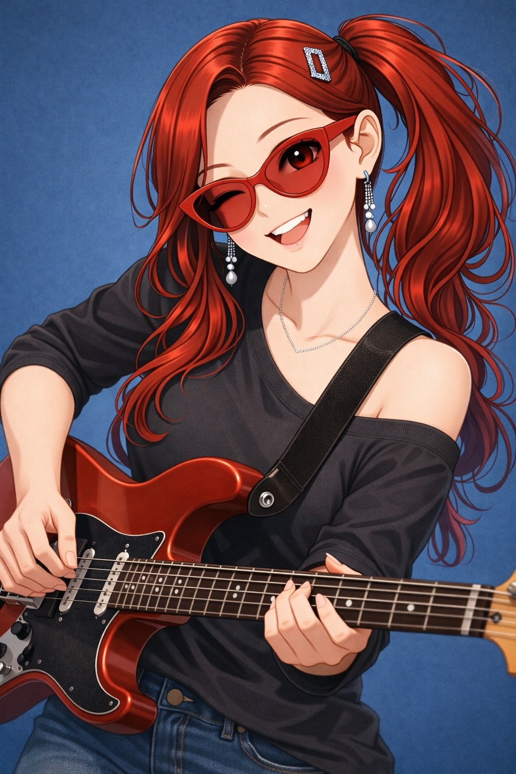 The track is an instrumental rock piece with a driving rhythm section and prominent electric guitar melodies, The tempo is moderately fast, creating an energetic feel, The instrumentation includes electric guitars, bass guitar, and drums, The electric guitars feature both clean and distorted tones, often playing harmonized melodies or counter-melodies, The bass provides a solid foundation with a consistent, often walking, bass line, The drums maintain a steady rock beat with fills that add dynamic interest, The song structure appears to be verse-chorus based, though without vocals, these sections are defined by changes in melodic motifs and intensity, Production-wise, the mix is clear, with the guitars sitting prominently in the foreground, There is a noticeable use of reverb on the guitars, contributing to a spacious sound, The overall feel is upbeat and anthemic, suitable for a driving montage or a live performance