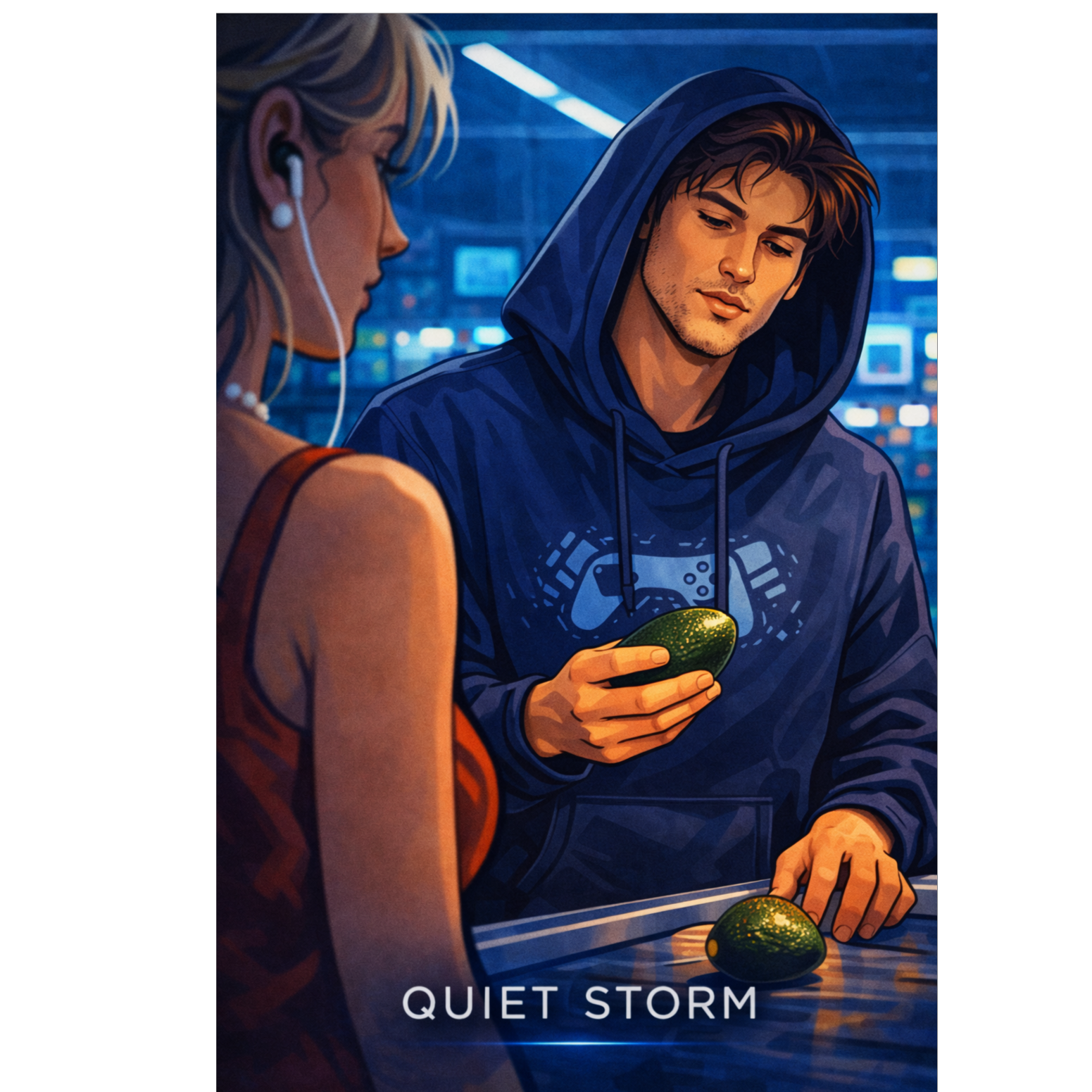 [Style: progressive melodic Quiet Storm + minimal downtempo, everyday realism, late grocery store, neutral tone]