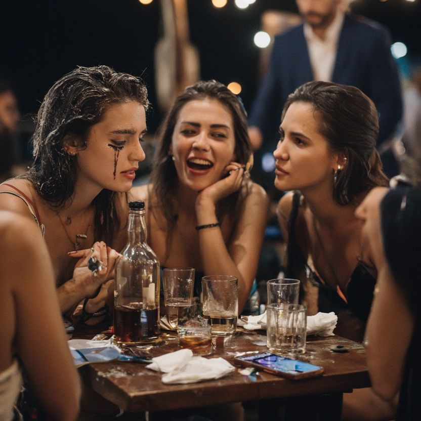 rock, Sun-baked surf rock groove with bright spring reverb and locked-in tom-and-snare drive, Crunchy rhythm guitars ride a steady eighth-note engine; surfy lead lines answer the vocal, Female lead with stacked female choir on the hook—big, brash, gang vocals that feel like a barroom singalong, Verses stay tight and conversational; chorus explodes with shouted call-and-response, Occasional drum breaks and stop-time hits underline the punchlines and group laughter, female vocals, loud