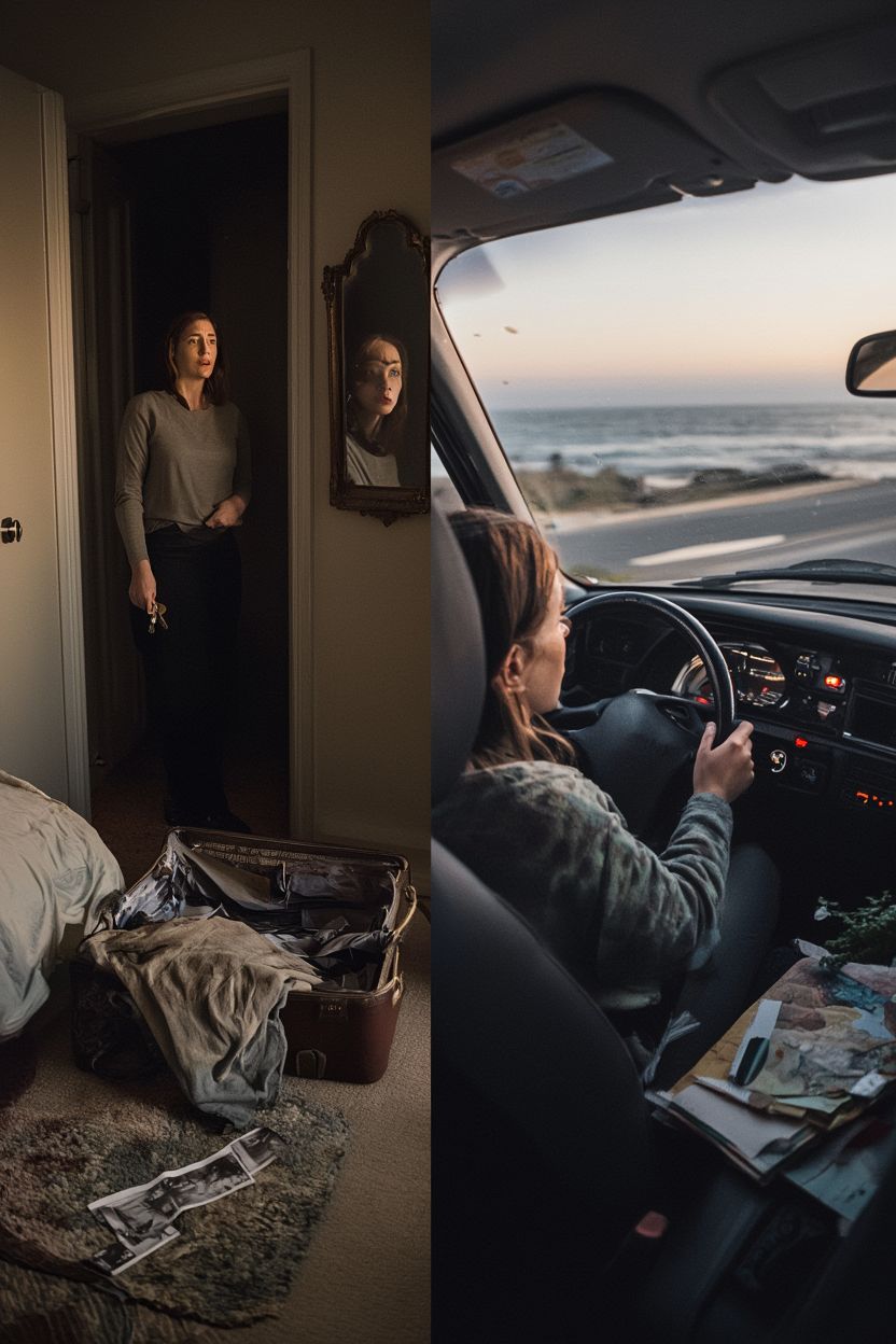 rock, Punchy surf rock with springy guitars, tight snare, and rolling toms; fast tempo with female vocals leaning half-sung, half-spoken on verses, Choruses burst open with doubled harmonies and bright reverb, bass walking underneath, Brief stop-time hits for jokes, then right back into a driving, sunburned groove; energy stays high while the lyrics sneak in the emotional weight, female vocals