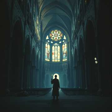 rock, Epic rock-orchestral ballad with male vocals and a solemn male choir, Slow build from intimate piano and low strings into towering drums, distorted guitar swells, and organ, Verses stay sparse and close; chorus explodes with full choir, cymbal crashes, and soaring lead line, Bridge strips back to voice, choir, and organ before a final anthemic reprise that feels like a defiant prayer shouted to the rafters, orchestral
