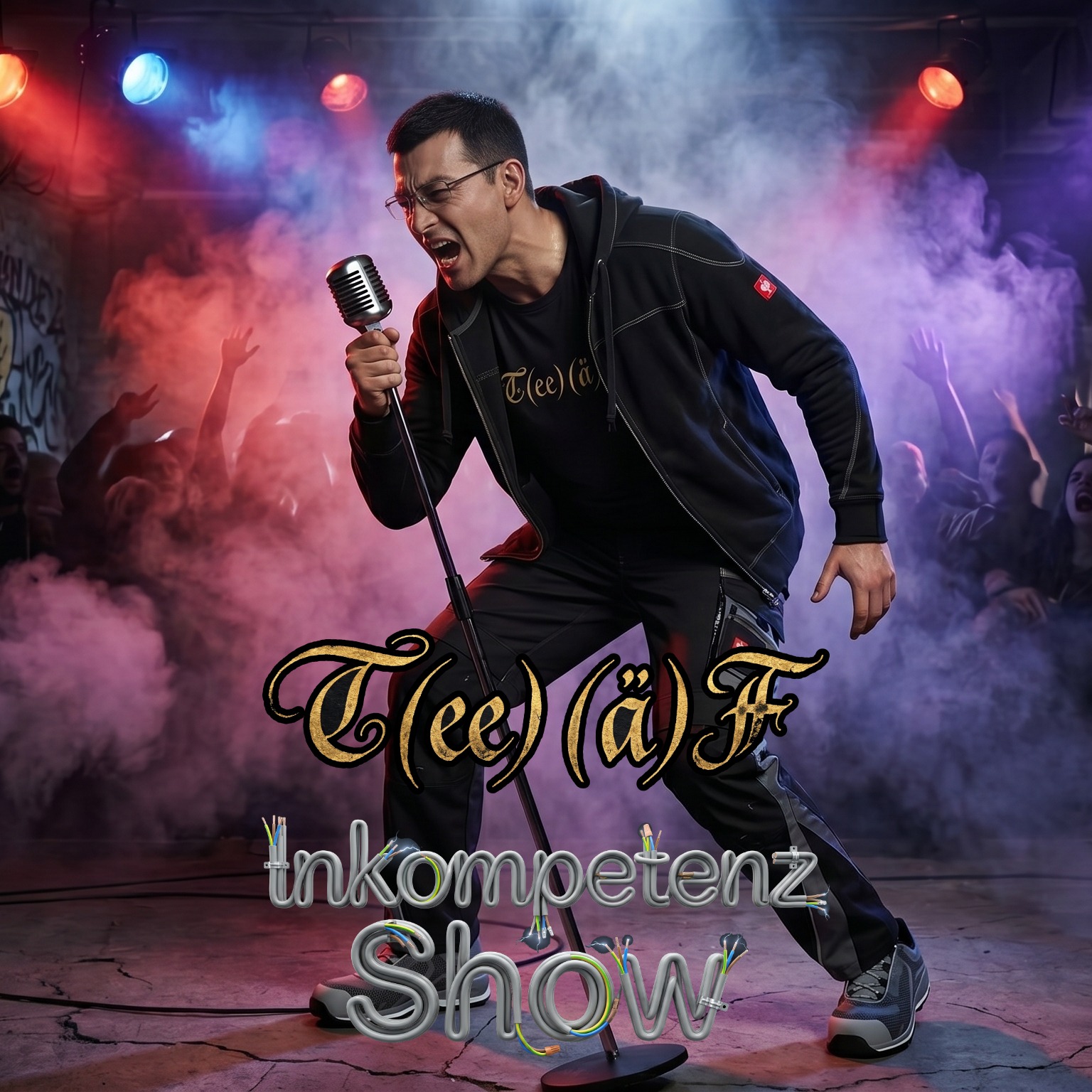 Comedy rap techno song, fast and energetic (Eurodance / happy hardcore vibe), German humor style like “Friesenjung”, absurd and chaotic storytelling, funny party energy, catchy shout chorus, simple repetitive hook, playful spoken rap parts, crowd participation, exaggerated comedy lyrics, meme-like internet humor, high BPM, festival style, ironic and over-the-top fun atmosphere, designed for sing-along and laughter