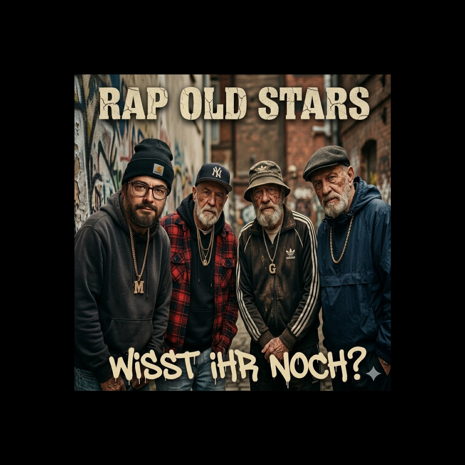 Old School Hip Hop, Boom Bap, 88–94 BPM, dusty vinyl crackle, raw drum loop with heavy kick and snare, funky bassline, minimal scratches and DJ cuts, analog warmth, no autotune, German male rap crew, multiple voices, Berlin dialect (West) and clean East German tone, deep raspy male vocals, aged and slightly rough breathy delivery, natural imperfections, no vocal polish, experienced street storyteller vibe, confident but calm flow, laid-back timing, group of older rappers trading lines, call and response hooks, minimal reverb, gritty urban atmosphere, nostalgic, raw, classic hip hop style, veteran energy, no modern trap elements