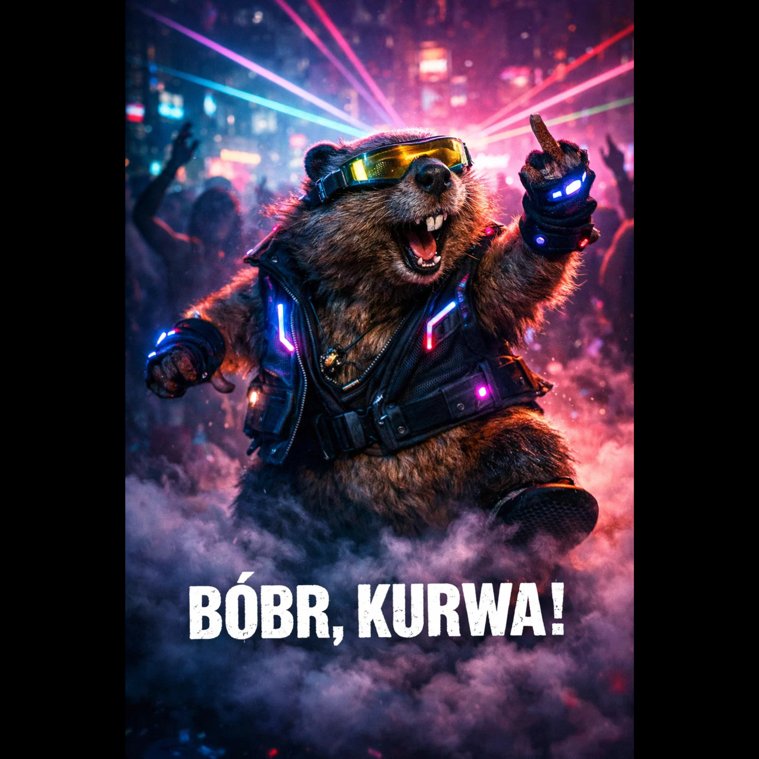170 BPM glitch Happy Hardcore, pounding kick drums, bright rave FX chords, gritty rave stabs, euphoric supersaw lead, deep smoky male voice with Polish vocal sample, seismic sub-bass down to 55 Hz, bright rave FX chords, whistle sounds, chaotic underground club / street vibe, massive euphoric drops, raw party energy, extended intro and build for 5-minute track