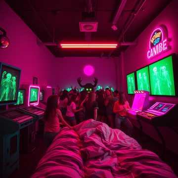 robotic, Limerick, Medieval, Dark Electro, Eurobeat, Italo Disco, E-Toms, layered arrangement, reverb heavy, happy chorus, varying melodies, random 8-bit sound effects, mixed voices