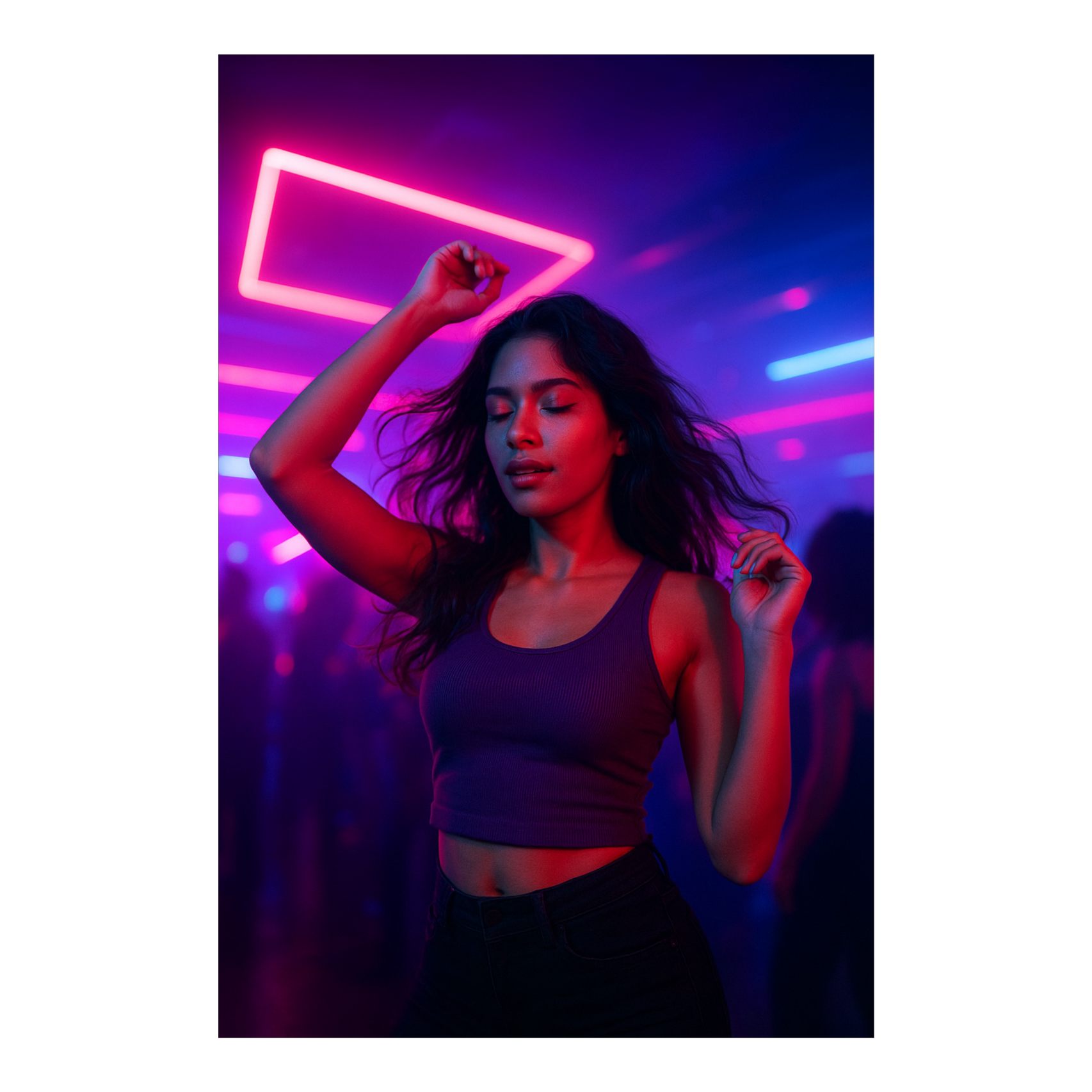 Female vocal with deep bass, techno-driven beat, sensual and provocative mood, expressive and atmospheric, Blend of indietronica and minimal techno, designed for an EDM rave setting—moody, hypnotic, and immersive