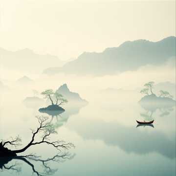 An ancient Chinese ambient instrumental piece unfolds with sparse, airy guqin and guzheng, gradually introducing delicate erhu, pipa, and haunting dizi and xiao lines, The sheng and yangqin add harmonic depth, while suona punctuates intense climaxes, creating sweeping, cinematic shifts and soaring textures
