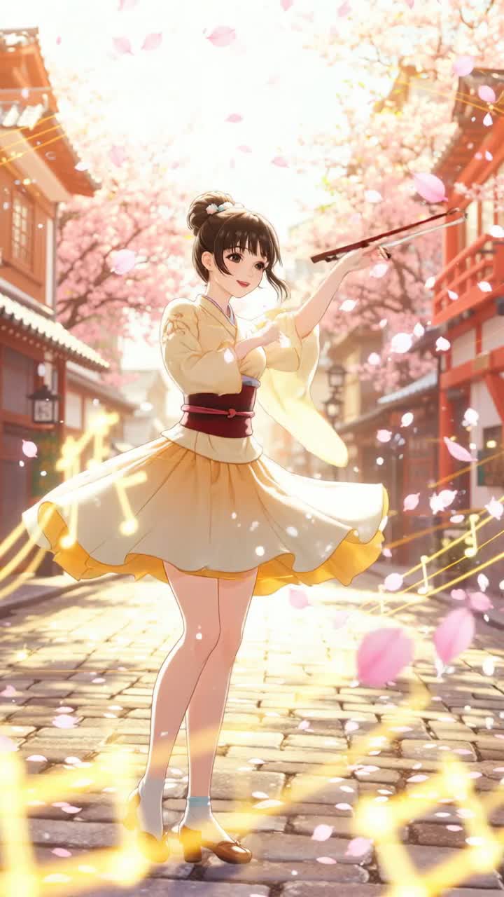 A sweeping instrumental soundtrack, opening with delicate, expressive piano motifs beneath a gentle bed of strings, Emotional violin melodies gradually interweave, evoking nostalgia, Subtle touches from traditional Japanese instruments add cultural color, building to a cinematic, anime-inspired climax