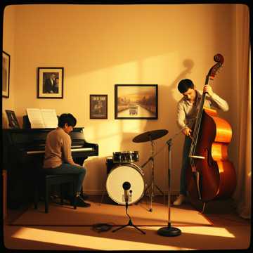An instrumental Cool Jazz Piano Trio, reminiscent of the classic 1960s Vince Guaraldi Trio soundtracks, The mood is warm, intimate, and wistful, like a fond childhood memory, Piano: A clean, lyrical piano sound with a light, percussive touch, The playing focuses on singable melodies, signature block chords, and tasteful improvisations, The performance should feel understated and soulful, not technically flashy, Acoustic Bass: A round, warm-toned upright bass that provides melodic and rhythmic support, walking with a relaxed, buoyant feel, Drums: Very subtle and minimalist drumming, primarily using brushes on the snare for a soft, shuffling texture, Light, crisp ride cymbal work keeps time, The rhythmic feel can be a gentle medium-swing, or a jazz waltz in 3/4 time, Production should be warm and analog, with a close-miked, 'in-the-room' ambience Charlie Brown