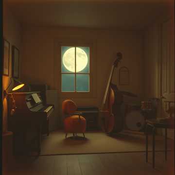 An instrumental Cool Jazz Piano Trio, reminiscent of the classic 1960s Vince Guaraldi Trio soundtracks, The mood is warm, intimate, and wistful, like a fond childhood memory, Piano: A clean, lyrical piano sound with a light, percussive touch, The playing focuses on singable melodies, signature block chords, and tasteful improvisations, The performance should feel understated and soulful, not technically flashy, Acoustic Bass: A round, warm-toned upright bass that provides melodic and rhythmic support, walking with a relaxed, buoyant feel, Drums: Very subtle and minimalist drumming, primarily using brushes on the snare for a soft, shuffling texture, Light, crisp ride cymbal work keeps time, The rhythmic feel can be a gentle medium-swing, or a jazz waltz in 3/4 time, Production should be warm and analog, with a close-miked, 'in-the-room' ambience Charlie Brown, spooky