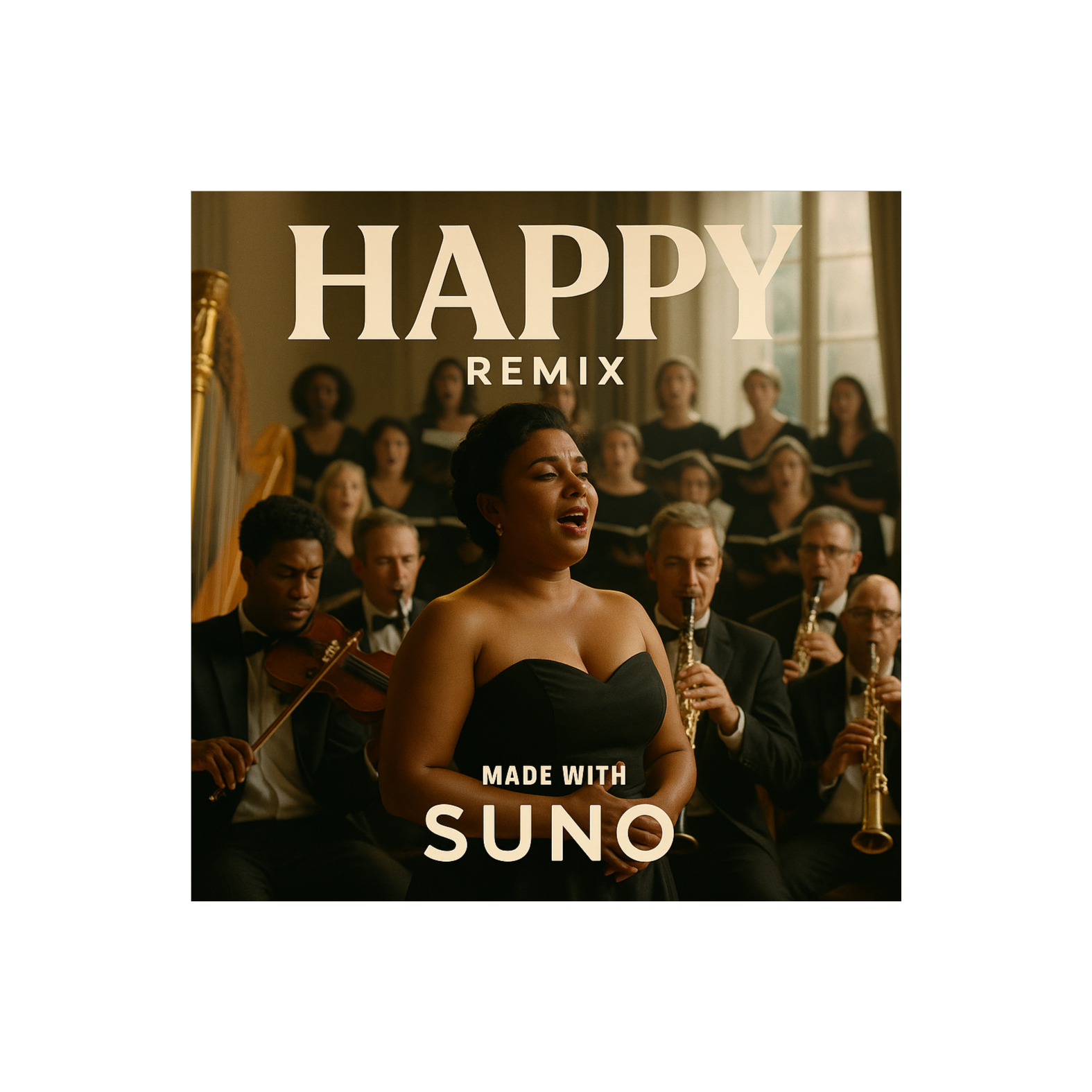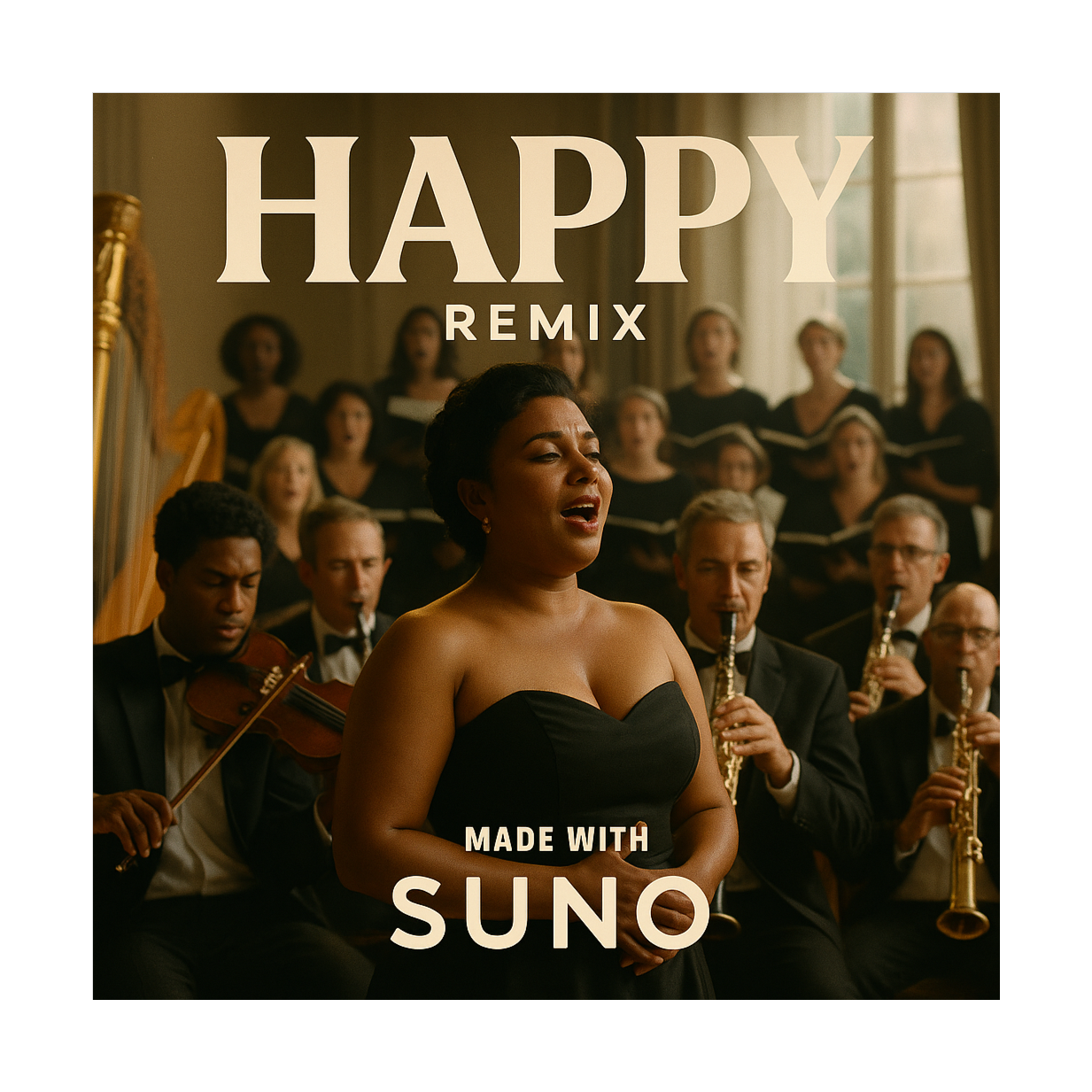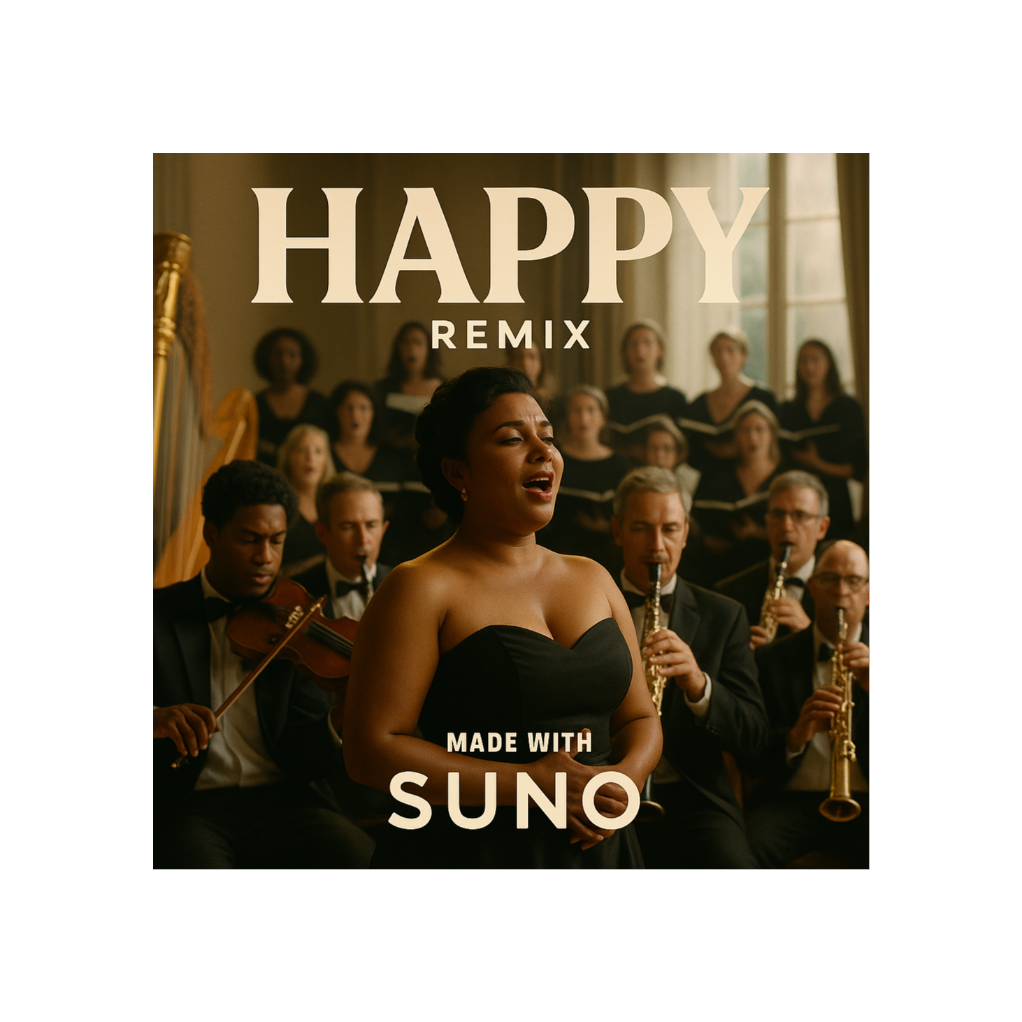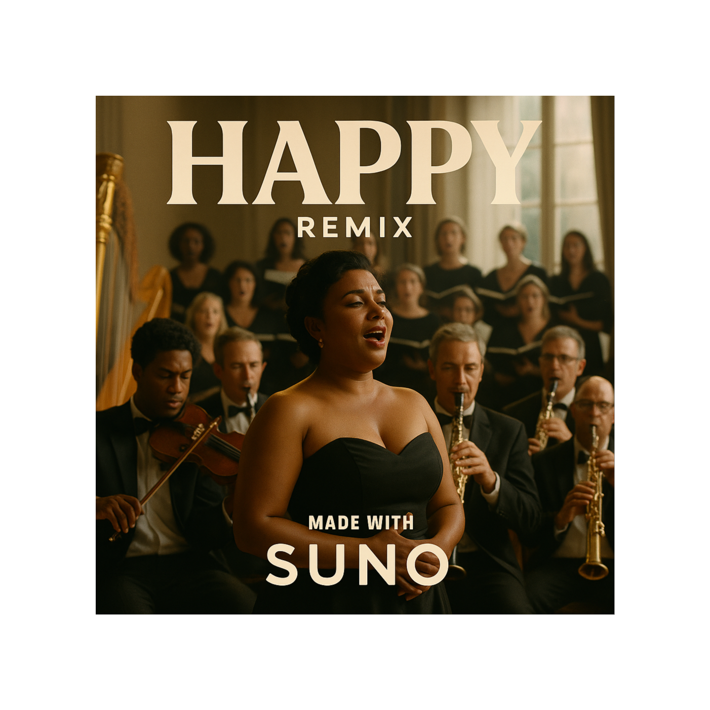 A warm, emotional yet hype party remix designed for family bonding and celebration, Vocals: rap verses with soulful delivery, layered with group vocals and call-and-response chants (“Are you happy?” → “YES WE ARE!”), Style: world fusion x Afro-Latin groove x festival anthem, Instrumentation: acoustic guitar, fiddle, accordion, sitar, and oud blended with Afro drums (congas, bongos, shakers), Indian percussion (tabla, dhol), Balkan brass, gospel choir harmonies, and EDM synth layers, Verses: intimate and groovy, with light guitar and percussion, Pre-chorus: gospel choir builds harmony and handclaps, Chorus: euphoric explosion of brass, drums, choir, and synths with chantable hooks (“Don’t that sh*t make you happy?”), Bridge: lo-fi breakdown with soft vocals and strings, then slams back into a carnival-style global drop, Tempo: 110–118 BPM, Mood: joyful, nostalgic, connective — a remix that blends cultures, instruments, and emotions to unite generations at a party