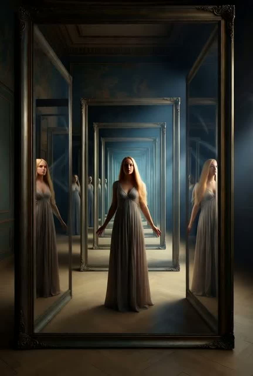 Epic mystical electronic track in the style of Enigma, with deep ambient textures, ethereal female choir, Gregorian-like chanting, shamanic drums, soft ethnic percussion, warm synth pads, distant whispers and echoes, The music should feel spiritual, ritualistic, and cinematic, slowly evolving with layers of atmospheric soundscapes, BPM around 70-90, mysterious, meditative, transcendental mood