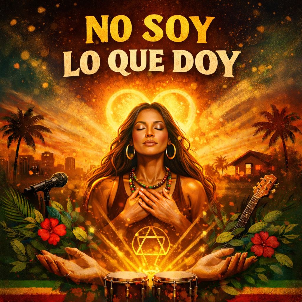 roots reggae riddim, 80 bpm, intense magnetic festival mood, deep warm grooving bassline with steady sensual movement, organic one drop drums with crisp rimshot snare and syncopated hi hats, bright sharp offbeat rhythm guitar, melodic expressive electric guitar licks plus extended emotional electric guitar solo after bridge with sustained notes and roots vibrato, subtle hammond organ chords adding warmth, light percussion with shakers and bongos for intimacy, atmospheric pads building tension and uplift, powerful expressive female lead vocal only, warm nurturing yet strong and soulful, female backing vocals repeating “la necesaria” and “no soy solo lo que doy” in call and response style, verses intimate and rhythmic, choruses anthemic and explosive, strong hook, festival energy, bold conscious uplifting transformative roots reggae sound