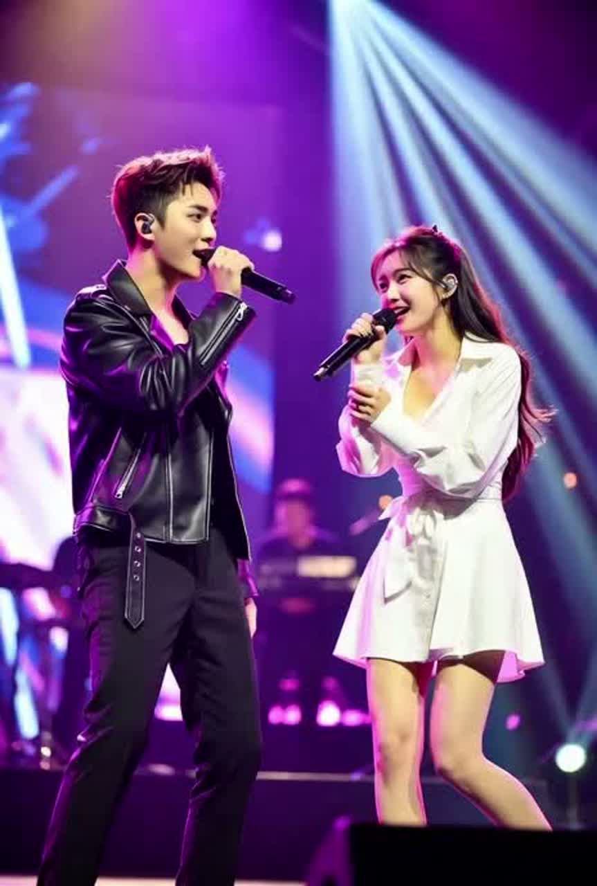A cinematic power ballad featuring a duet between a soulful male and female vocalist, The track begins with a delicate piano melody in a minor key, accompanied by atmospheric synth pads and subtle reverb, As the song progresses, it builds into a grand orchestral arrangement with soaring strings, cinematic percussion, and a driving bassline, The male vocal is warm and resonant, while the female vocal is powerful and emotive, both utilizing extensive vibrato and dynamic range, The structure follows a traditional verse-chorus-verse-chorus-bridge-chorus format, with the final chorus reaching a dramatic climax, Production is polished with wide stereo imaging, lush vocal harmonies, and a clean, modern mix, The tempo is a steady 72 BPM, maintaining a sense of emotional weight throughout