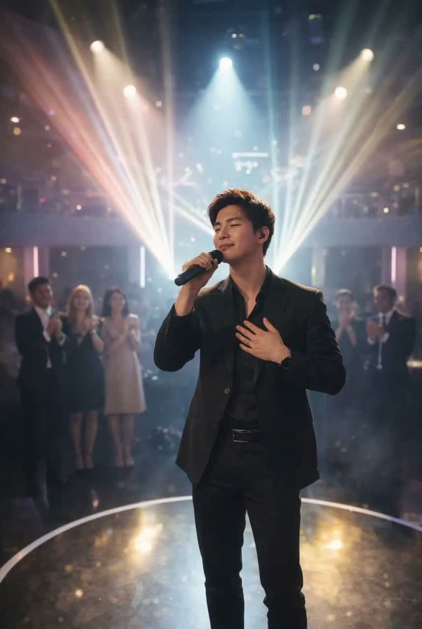 An uplifting and cinematic K-Pop power ballad featuring a soaring male vocal performance, The track begins with a delicate piano melody and atmospheric synth pads, gradually building into a grand orchestral arrangement with lush string sections and a driving pop-rock drum kit, The tempo is a steady 72 BPM in a 4/4 time signature, set in a major key to evoke a sense of hope and resilience, The vocals are clear and emotive, utilizing a wide dynamic range from soft, breathy verses to powerful, belted choruses with high-register head voice accents, Production is polished with shimmering reverb on the vocals and a wide stereo field for the orchestral elements, The structure follows a traditional Verse-Chorus-Verse-Chorus-Bridge-Chorus format, peaking with an anthemic final chorus supported by layered vocal harmonies
