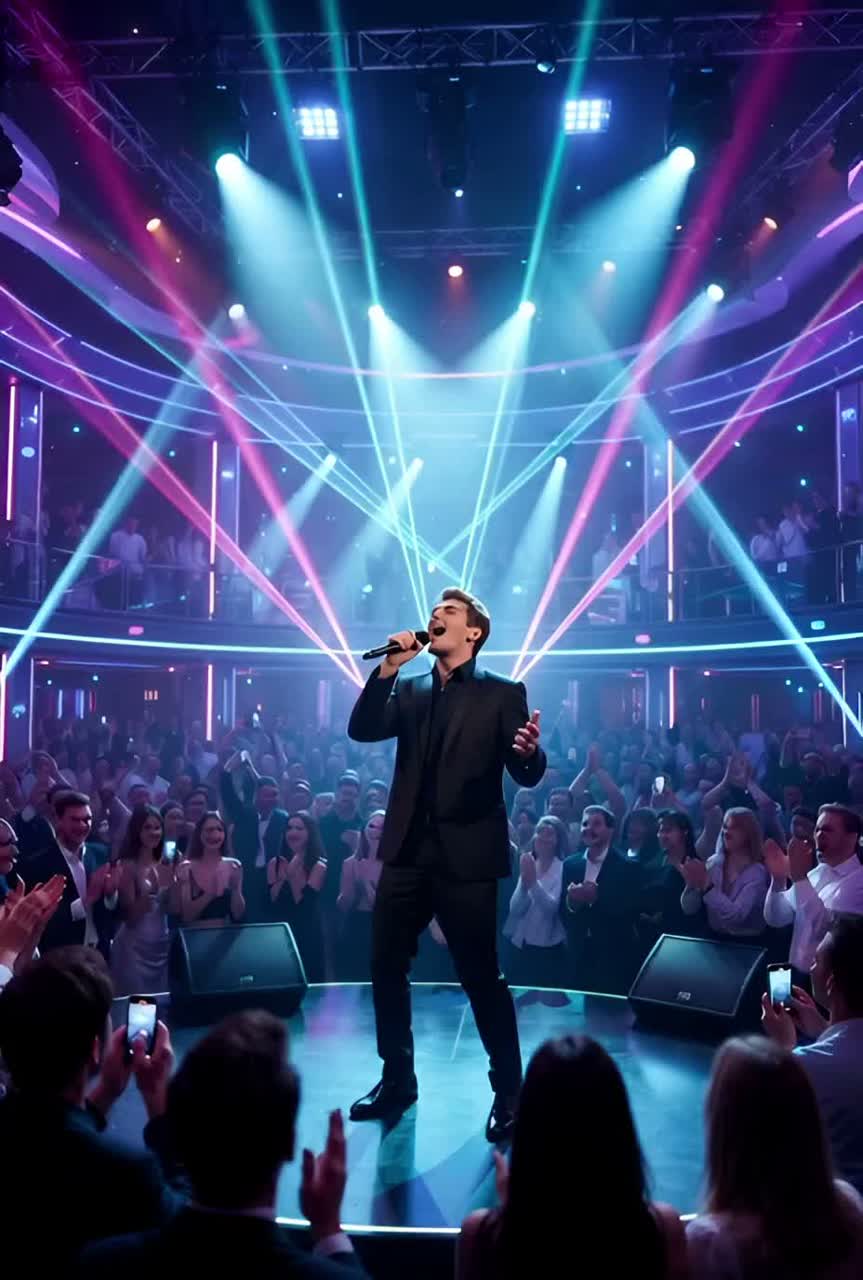 High-energy K-pop and J-pop fusion featuring powerful male tenor vocals with a bright, resonant quality, The track opens with a rhythmic finger-snap and a funky, syncopated electric guitar riff, The arrangement builds into a dense, polished production with driving electronic drums, a prominent slap bassline, and shimmering synth pads, The chorus is anthemic, characterized by soaring vocal melodies and layered harmonies, The bridge features a dramatic shift with a sustained high-note vocal belt and orchestral string accents before returning to the final high-octane chorus, The tempo is approximately 128 BPM in a major key, utilizing a mix of funk-inspired rhythms and modern electronic pop textures