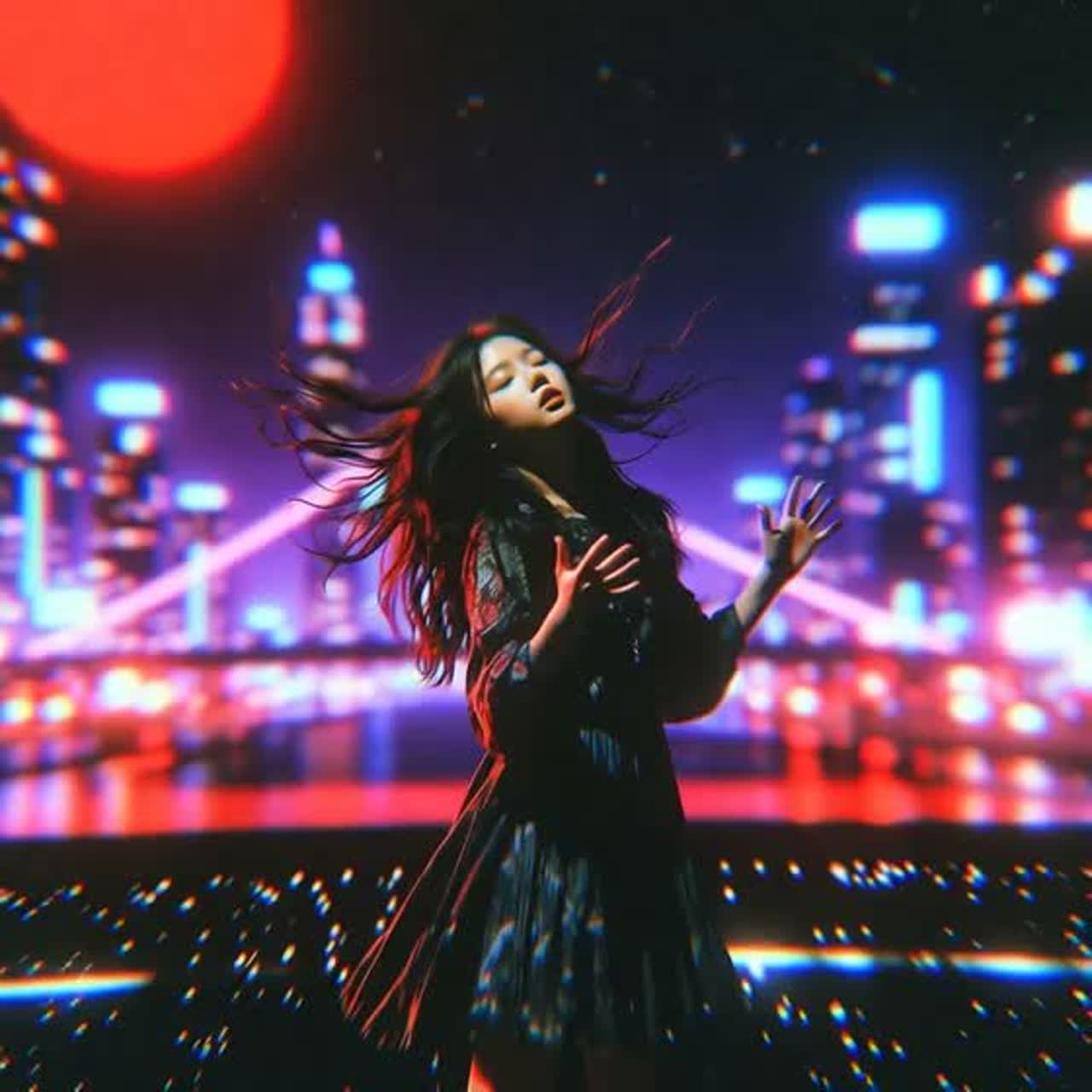 High-energy J-Pop and Anime-style power ballad featuring a female vocalist with a powerful, emotive belt and clear vibrato, The track is set in a minor key at a fast tempo of approximately 165 BPM, The arrangement is driven by a driving rock foundation consisting of distorted electric guitars playing palm-muted rhythms in the verses and wide, soaring power chords in the chorus, A prominent synthesizer layer provides a futuristic texture with arpeggiated leads and bright pads, The percussion is a standard rock kit with a heavy snare on beats two and four, complemented by rapid double-kick patterns during high-intensity transitions, The structure follows a traditional Verse-Pre-Chorus-Chorus-Bridge format, featuring a technical electric guitar solo with high-gain distortion and rapid alternate picking, Production is polished with a wide stereo field, heavy compression on the drums, and shimmering reverb on the vocals