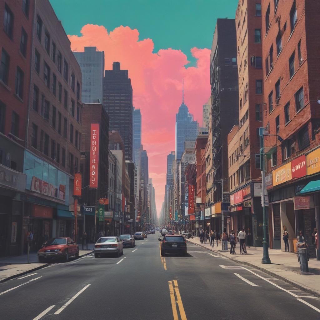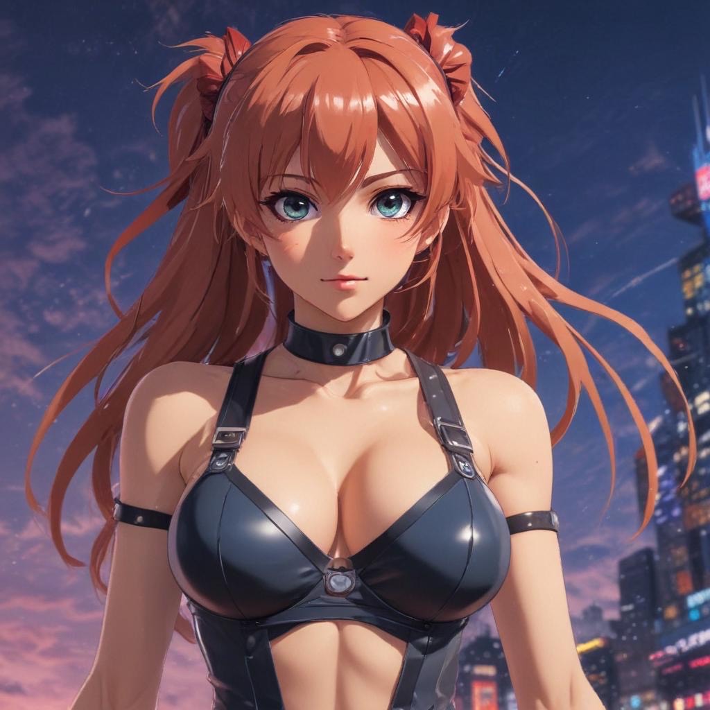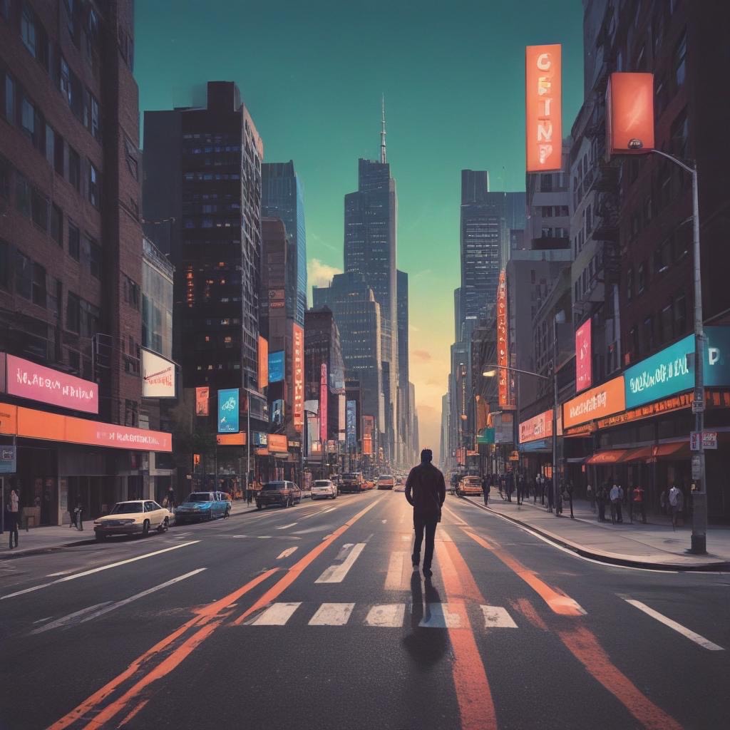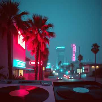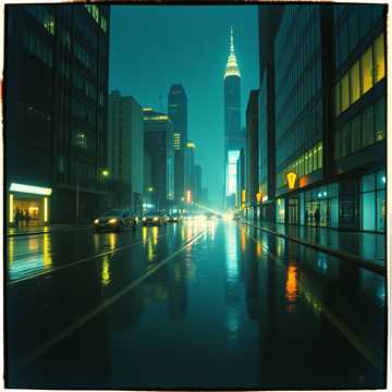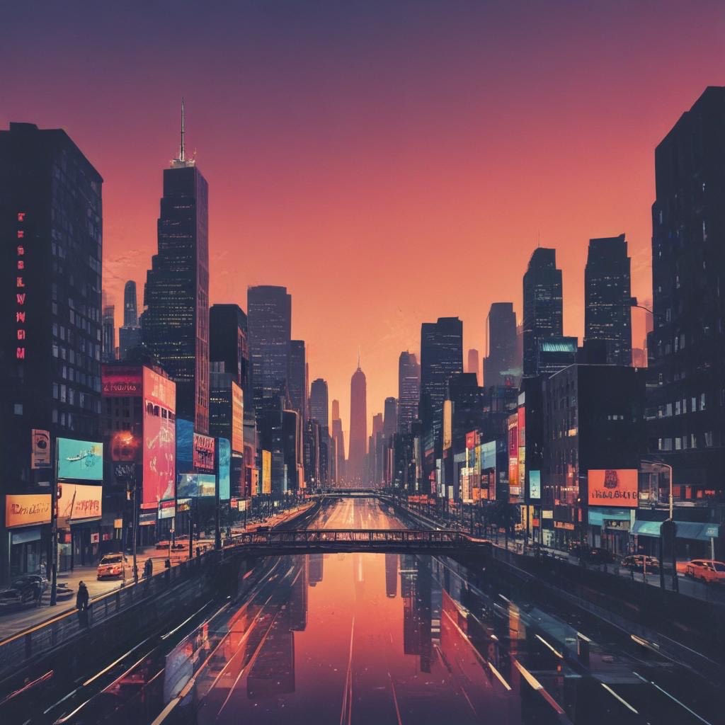 > *"Late 1980s Japanese city night scene, slightly foggy neon-lit streets, A young woman with short hair walks alone wearing a faded denim jacket and a mini skirt, her expression hiding a touch of loneliness beneath a In the atmosphere, imagine the sound, sharp electric guitar cutting rhythms, a smooth, pulsing synth bass line, shimmering synth pads, and tight snare and hi-hat beats that echo the pulse of the city, Neon lights in red, blue, and purple wet pavement, Capture the mood of urban solitude and glittering allure, Shot with a cinematic angle from waist height, shallow depth of field, neon bokeh in the background, film grain texture for an authentic 1980s analog feel, "*